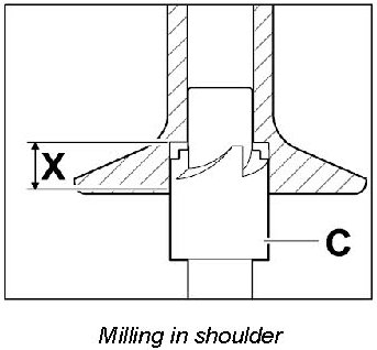 Mill out bore hole up to dimension X using spot facer C. See Table. Milling in may only be performed using the tool contained in the Porsche special tools. Use an electronically controlled power drill set to a speed of approx. 250 rpm (1/min) for milling in.