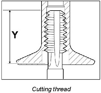 Cut thread into the chassis bushing using a cutting tool D up to dimension Y. See Table ?????. Clean the thread on the chassis bushing (blow it out).