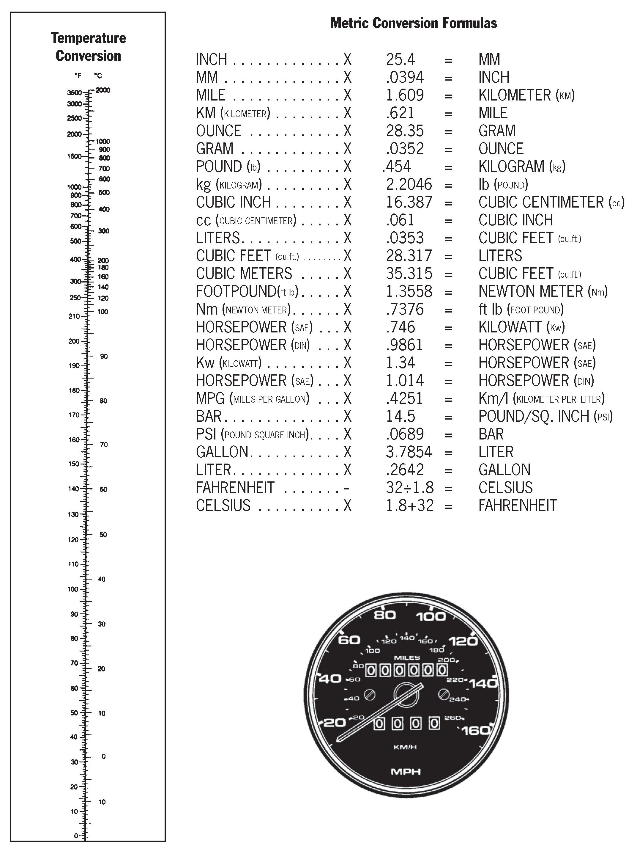 Metric Conversion Formulas