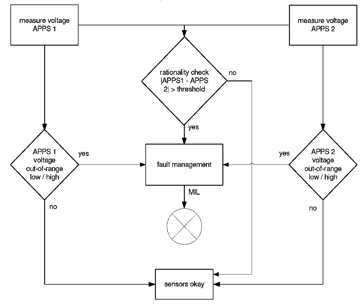 The purpose of the diagnosis shall be the detection of electrical faults and not plausible Conditions of the two sensors. Therefore the following error-checks are performed: