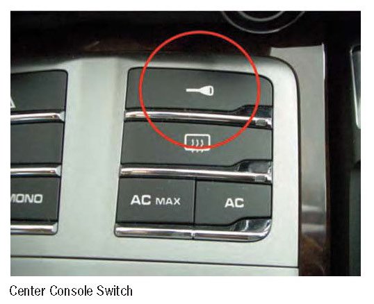 The vehicle is locked or unlocked using the switch shown here in the center console and rear console.