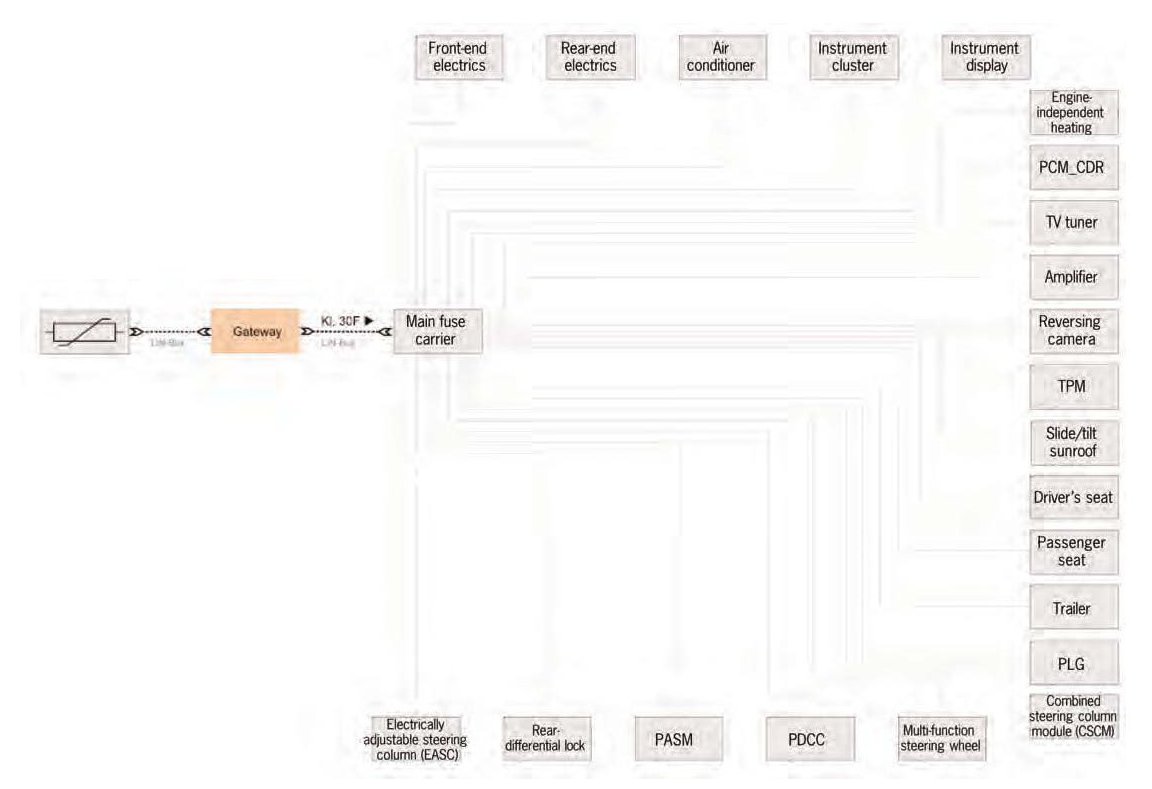 - When the vehicle is unlocked, the gateway sends the switch-off signal for terminal G2 after 32 minutes.