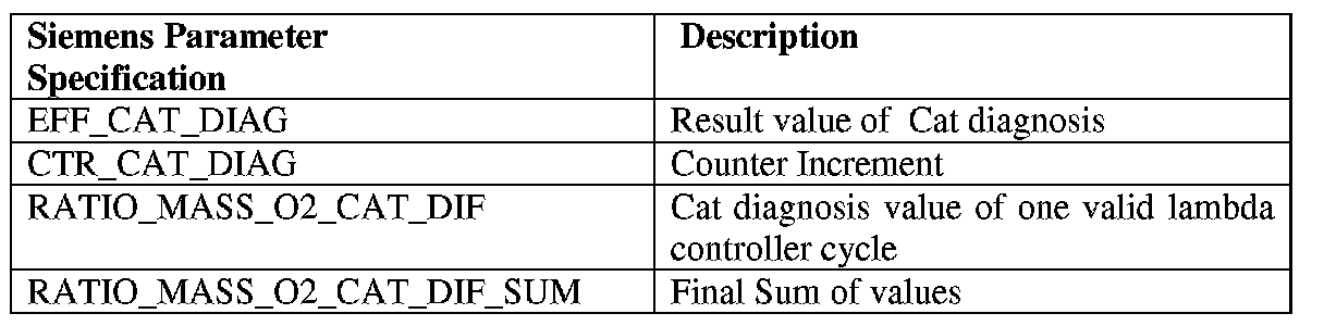 The diagnostic function which is used for monitoring of the catalyst efficiency is based on measure of the oxygen within the catalyst determined by the upstream and the downstream oxygen sensor. If all monitoring conditions are fulfilled, then a special defined A/F-modulation will be done. The relation of the deviations between the current downstream-sensor-signal to the average value of the downstream-sensor-signal is a sign for catalyst condition. The catalyst system is considered malfunctioning, if after a specified number of monitoring cycles the average of the ratios exceeds a threshold. The corresponding fault code is stored.