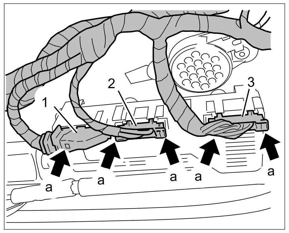 1. Release electric connectors -1, 2, 3- ( -a- ) and unplug them at the lid control unit.