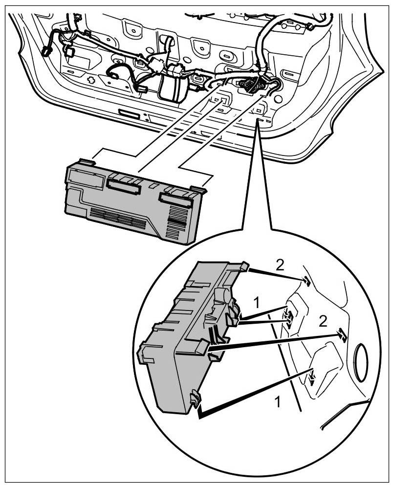 1. If a new control unit has to be installed, the values and codings must be read out using the 2nd generation PIWIS Tester 9818 prior to removing the "old" control unit for rear lid. -> 556855 Replacing control unit for rear lid 556855 Replacing Control Unit for Rear Lid.