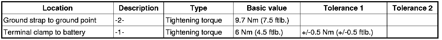 1. Connect ground strap to the ground point and secure with the fastening nut -2-. => Tightening torque: 9.7 Nm (7.5 ftlb.)