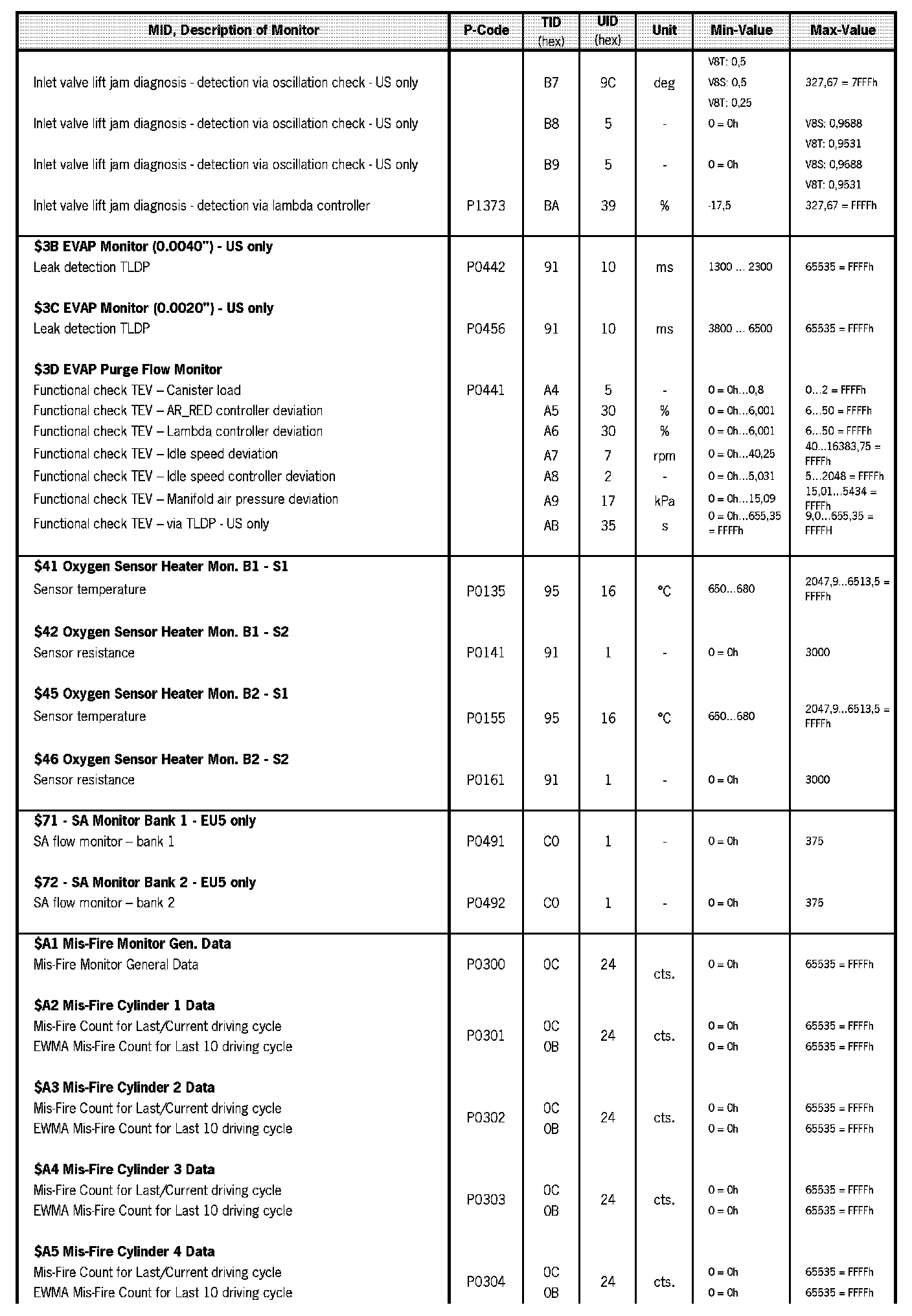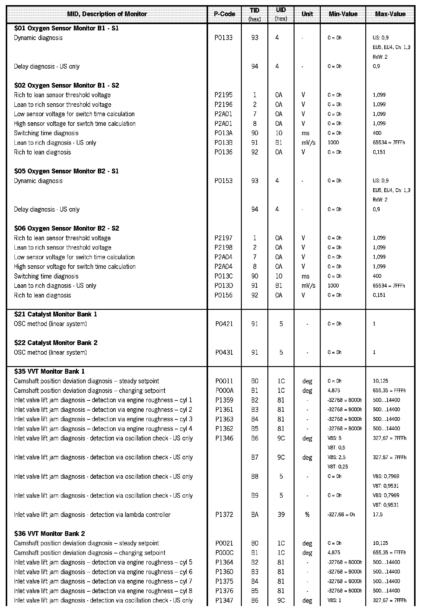 Mode 6 (Protocol ISO 15765-4) - Panamera 970 V8 MY 11