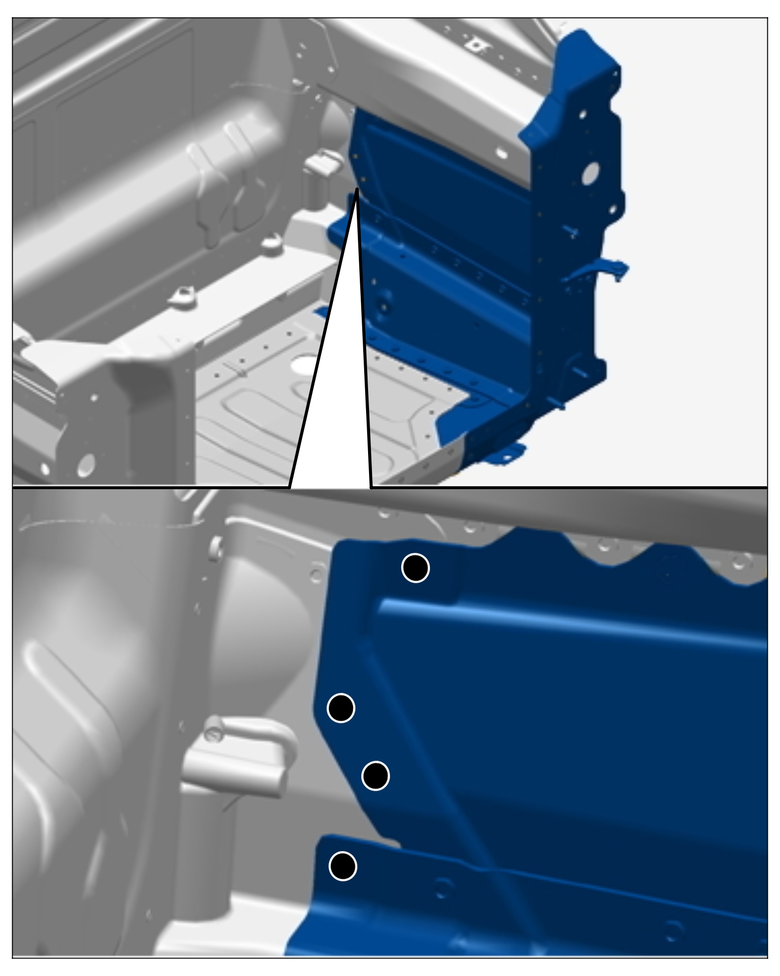 2. Drill through clinch points using a -> Diameter: 6.5 mm.