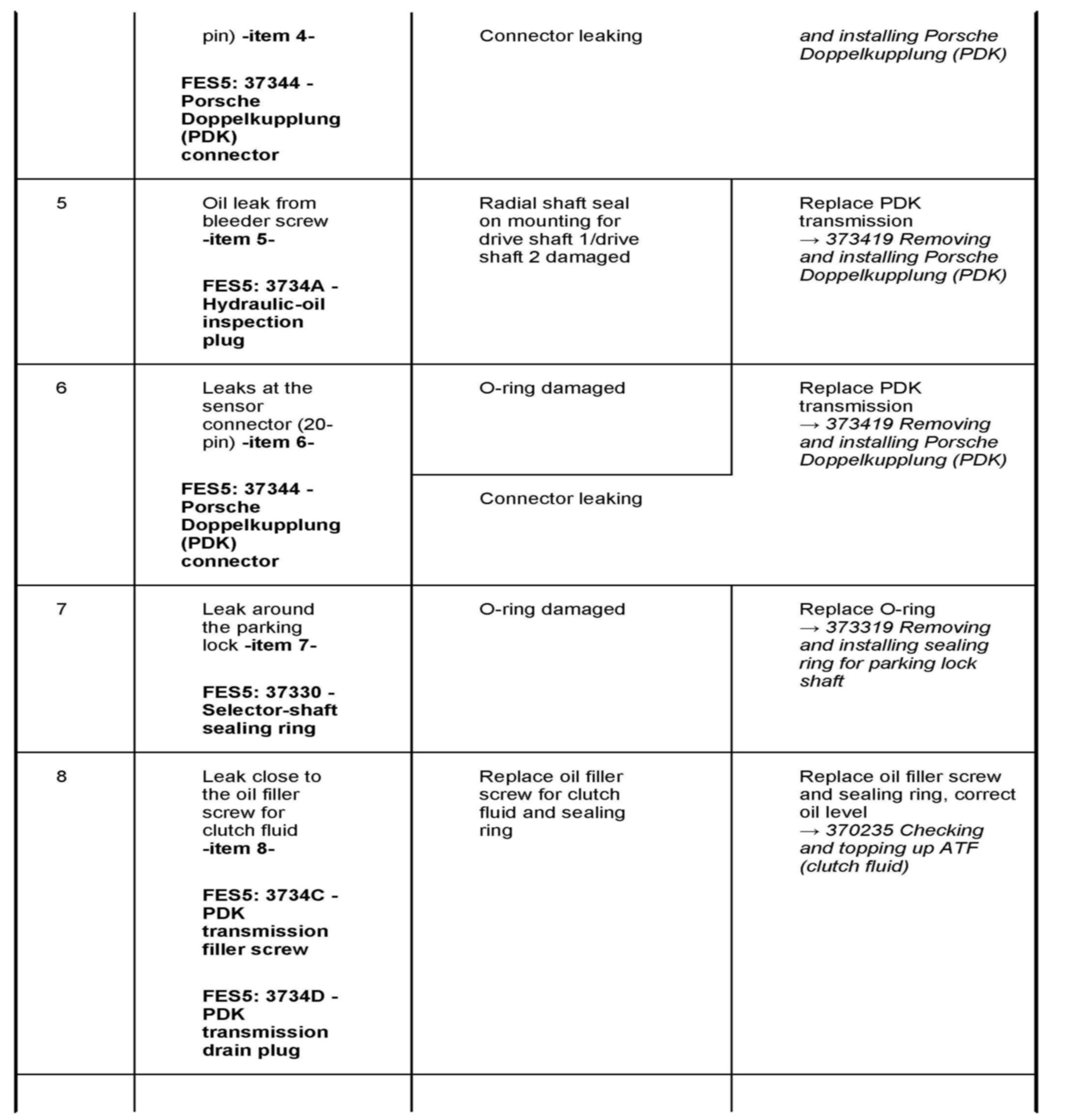 Changed procedures for avoiding "apparent leaks" are described under --> 370235 Checking and topping up ATF (clutch fluid) and --> 370255 Changing ATF (clutch fluid) in the Workshop Manuals.