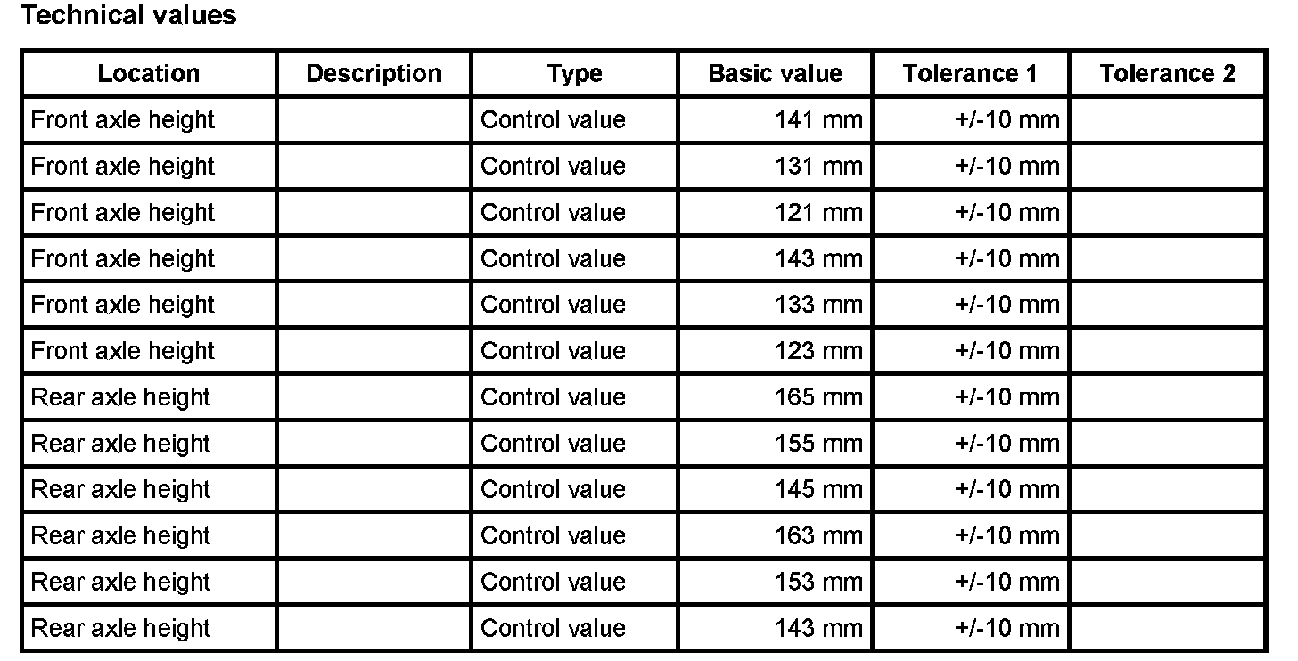 ^ The following values relate to the empty weight, i.e. full fuel tank, vehicle with tools, but without driver and without additional weights!