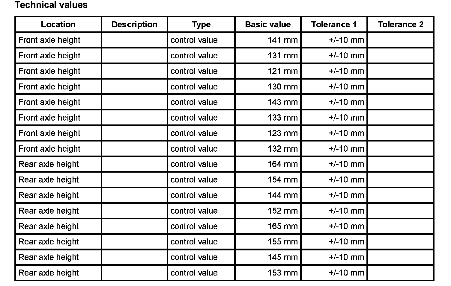^ The following values relate to the empty weight, i.e. full fuel tank, vehicle with tools, but without driver and without additional weights!