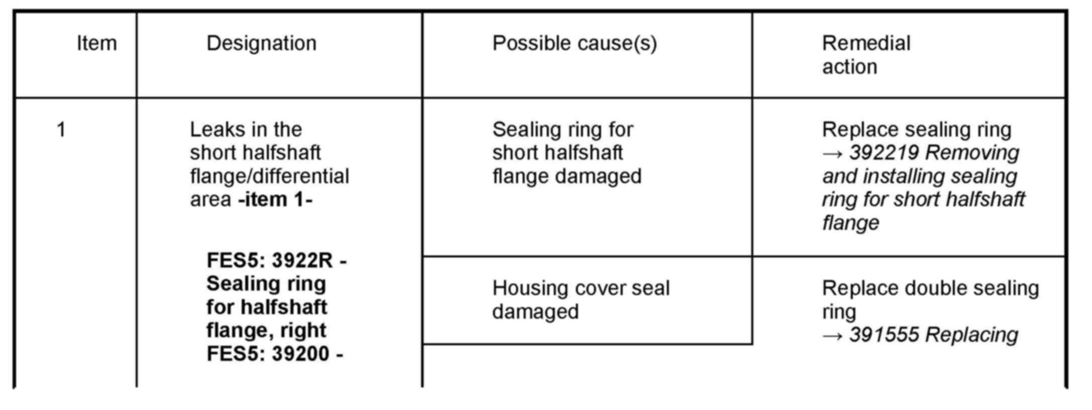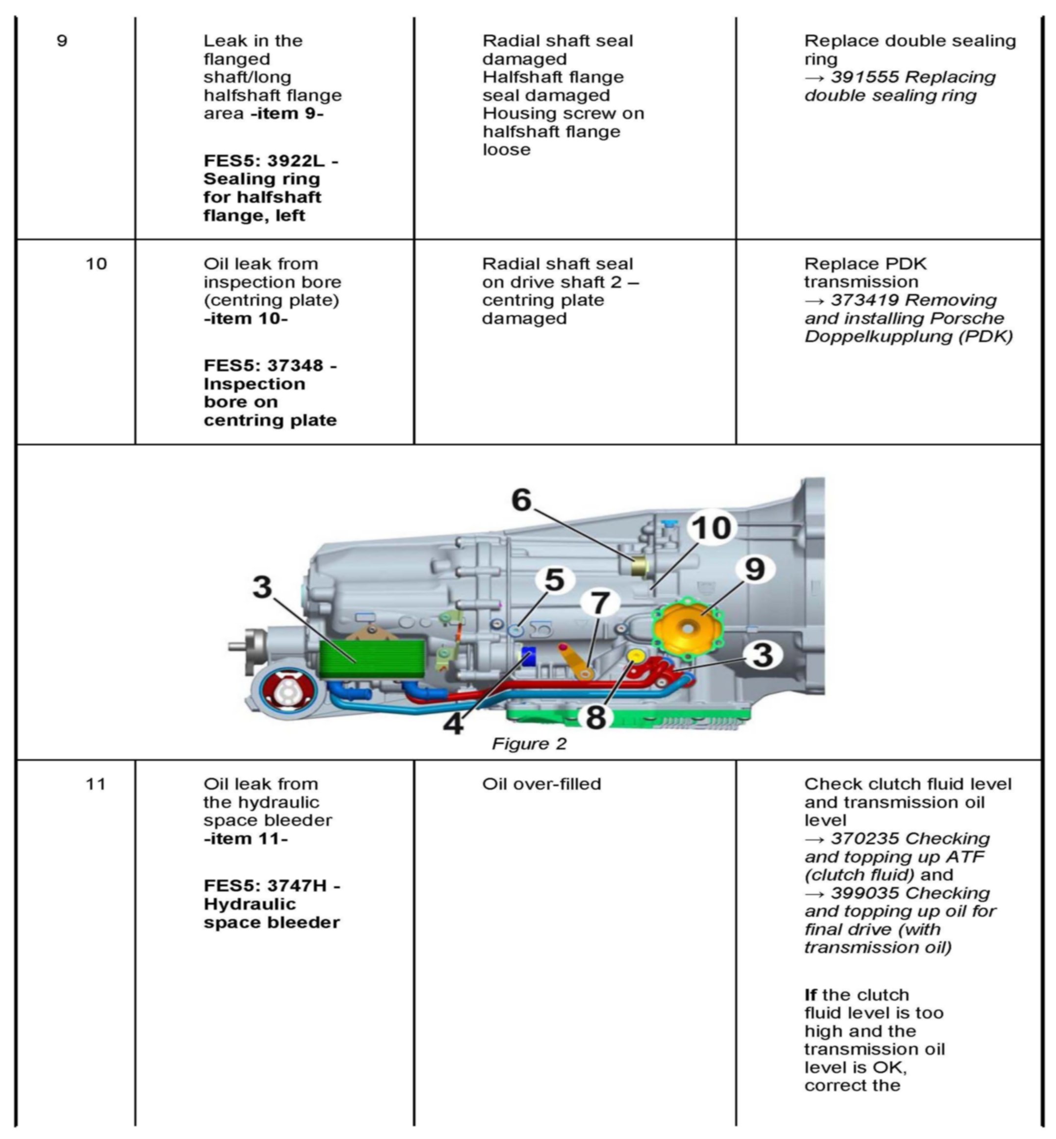 Procedure: 22 Repair measures in the event of leaks on the PDK transmission