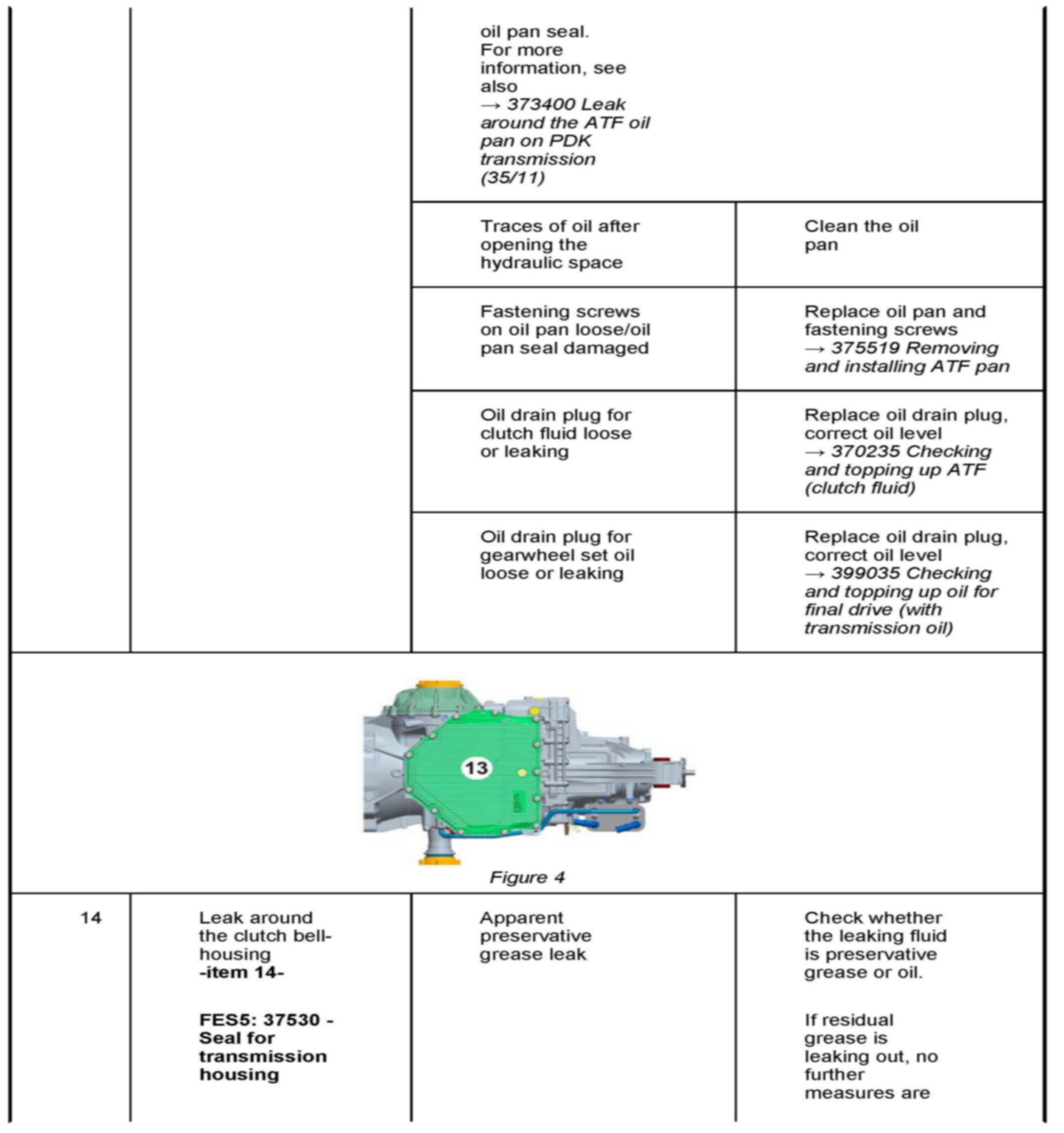 Changed procedures for avoiding "apparent leaks" are described under --> 370235 Checking and topping up ATF (clutch fluid) and --> 370255 Changing ATF (clutch fluid) in the Workshop Manuals.