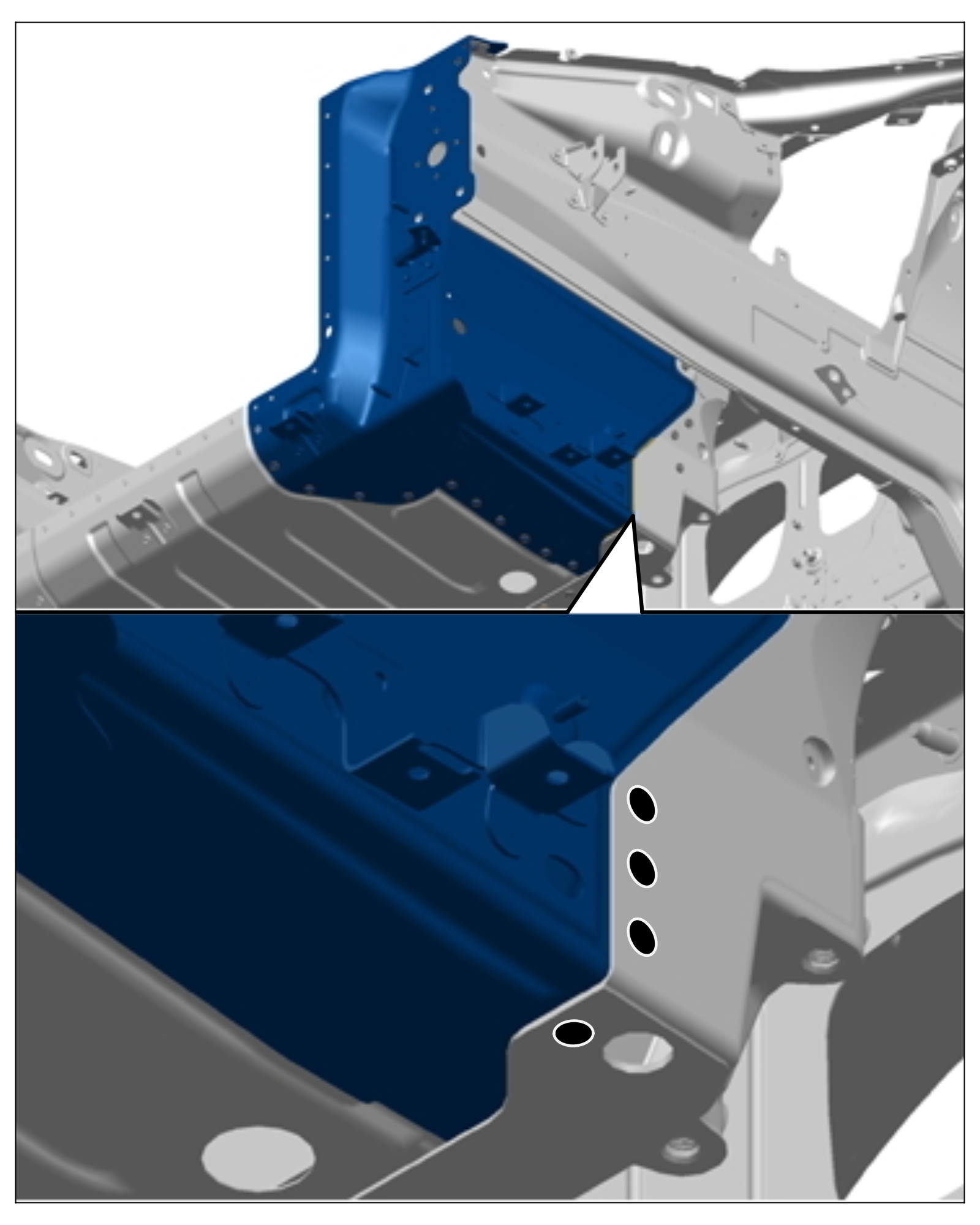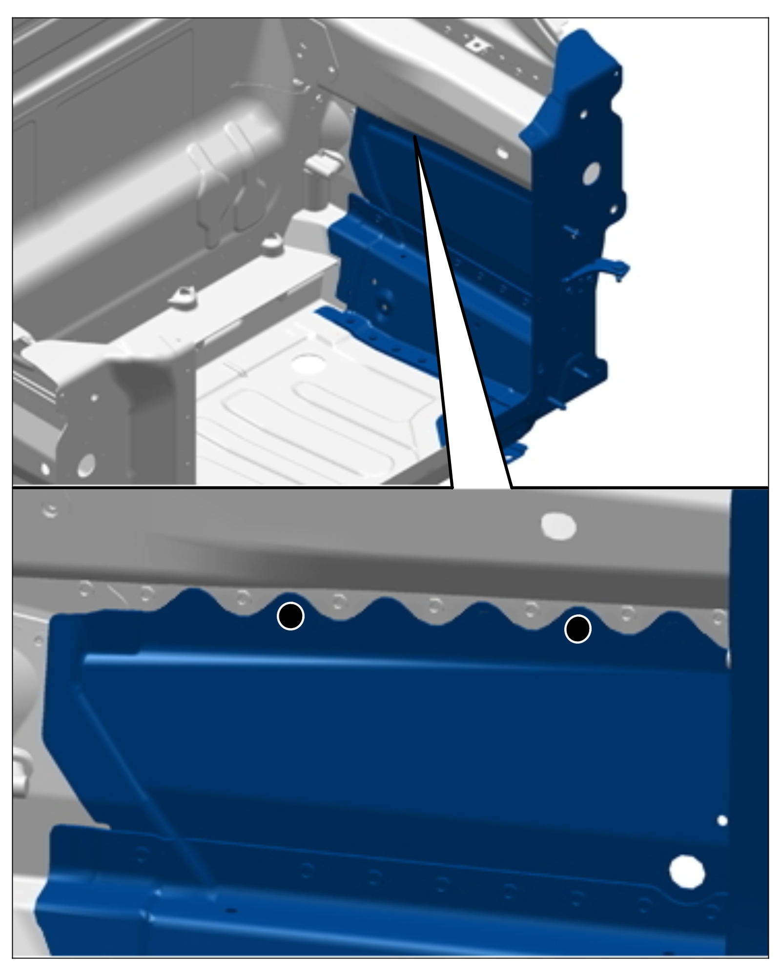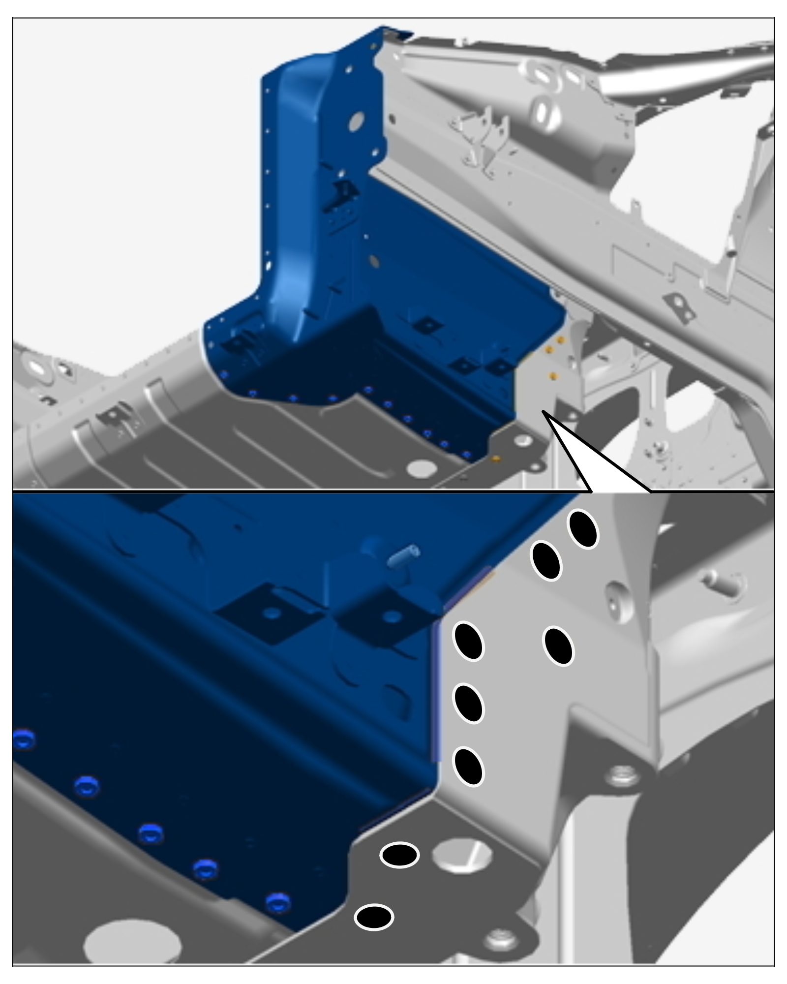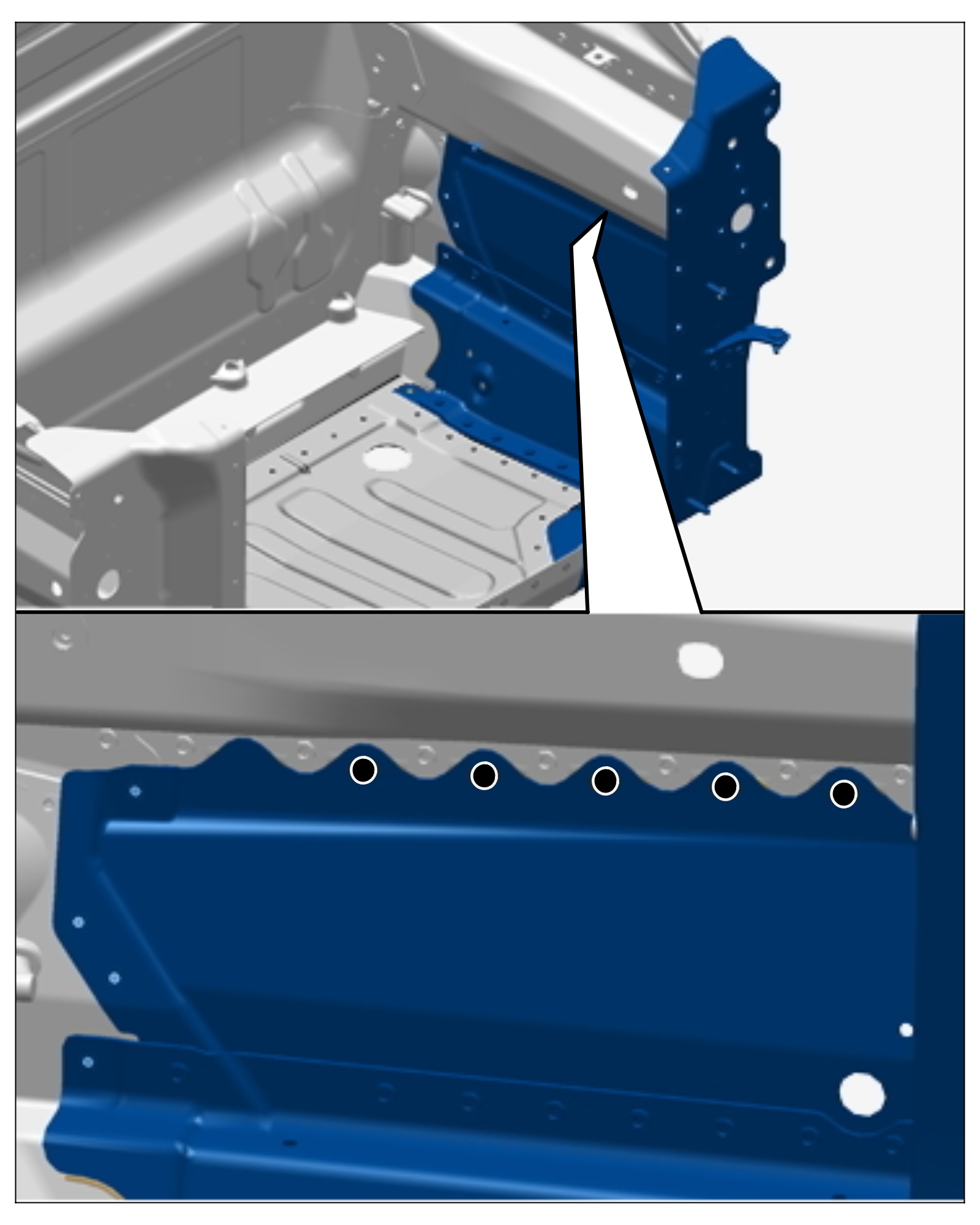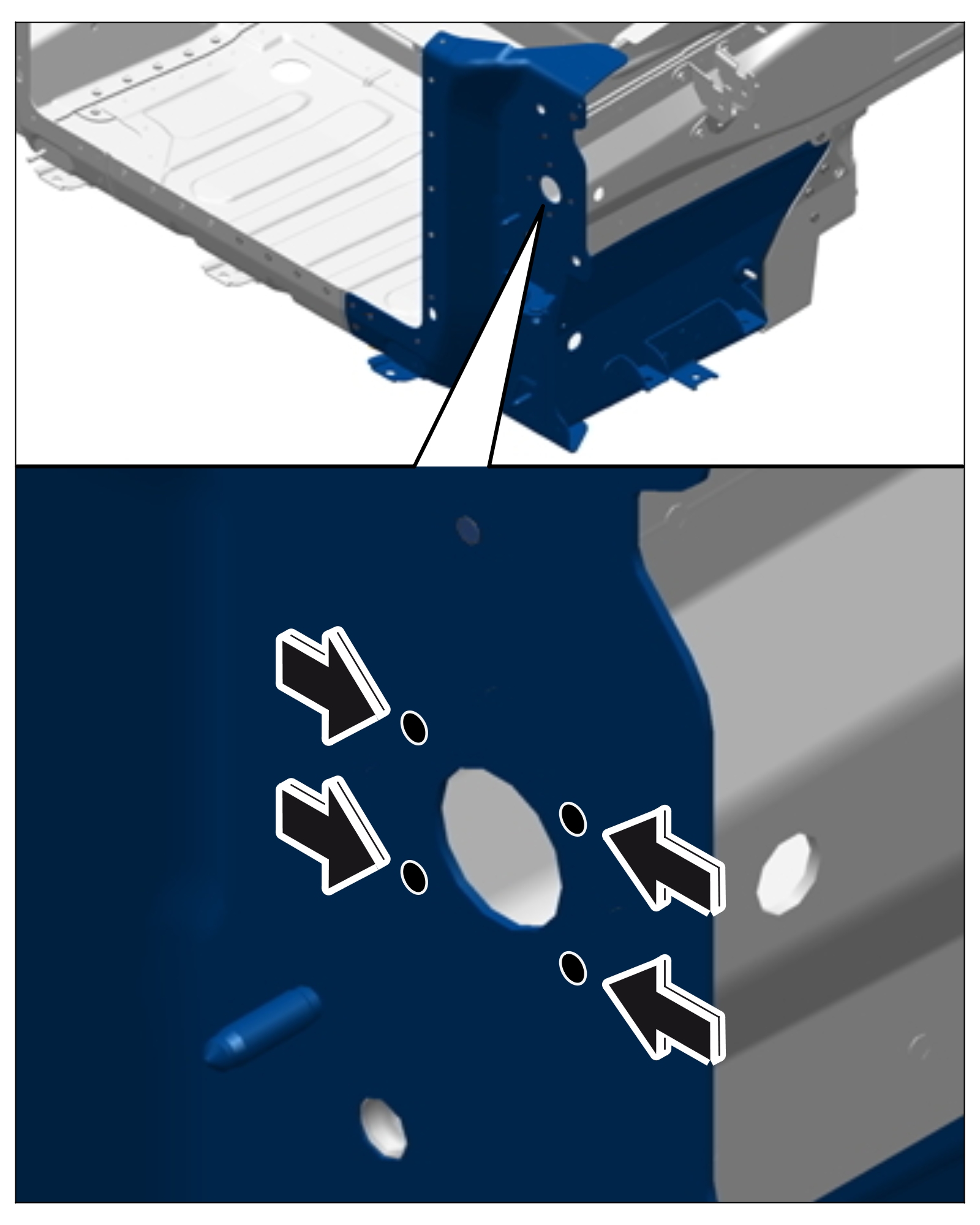 2. Drill through clinch points using a -> Diameter: 6.5 mm.