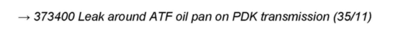 > The following link has been added under Step 13 in the section "Procedure: 2 - Repair measures in the event of leaks on the PDK transmission": --> 373400 Leak around the ATF oil pan on PDK transmission (35/11).