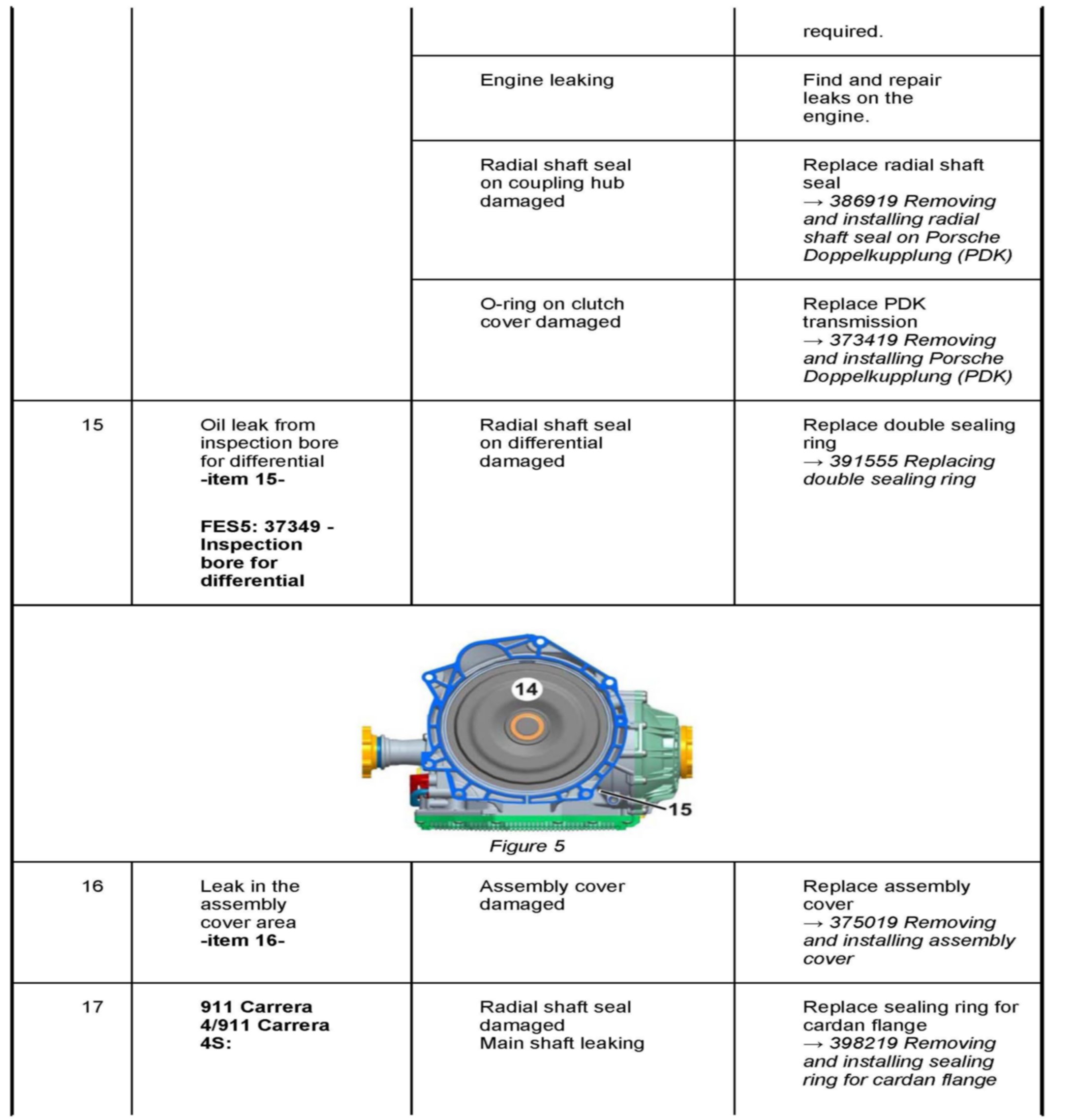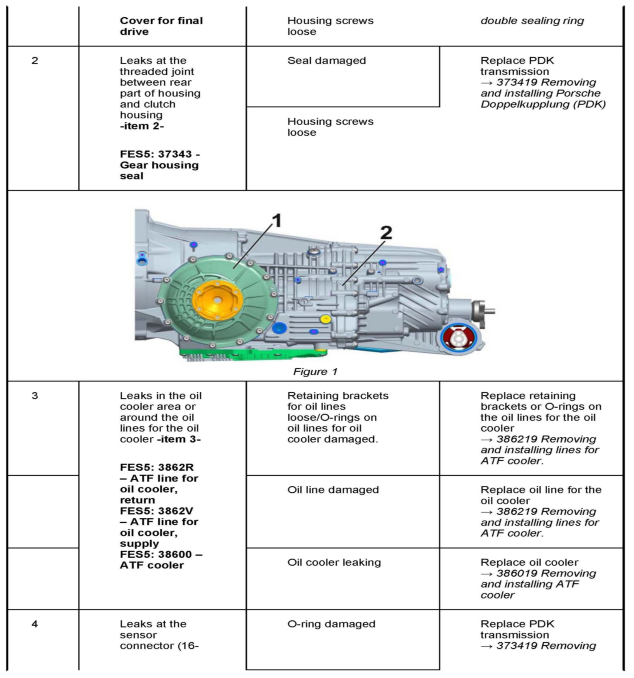 Procedure: 22 Repair measures in the event of leaks on the PDK transmission