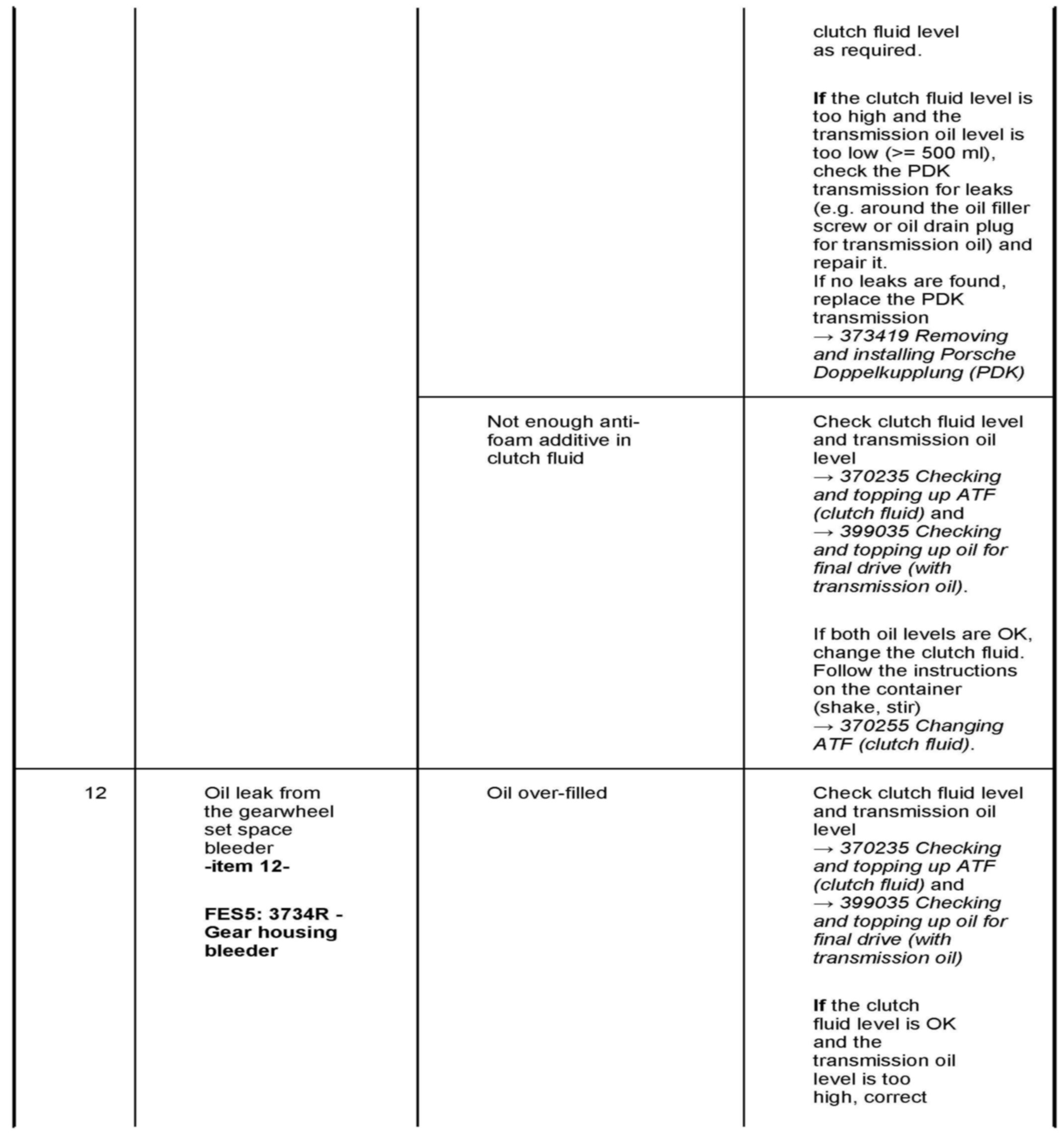 Changed procedures for avoiding "apparent leaks" are described under --> 370235 Checking and topping up ATF (clutch fluid) and --> 370255 Changing ATF (clutch fluid) in the Workshop Manuals.