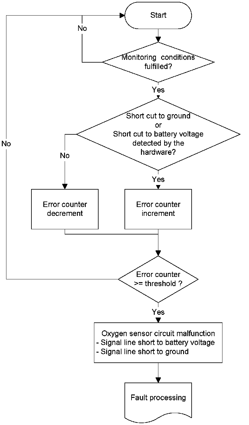 The oxygen sensor circuit monitoring detects the malfunctions by evaluating the error information received from oxygen sensor microcontroller: