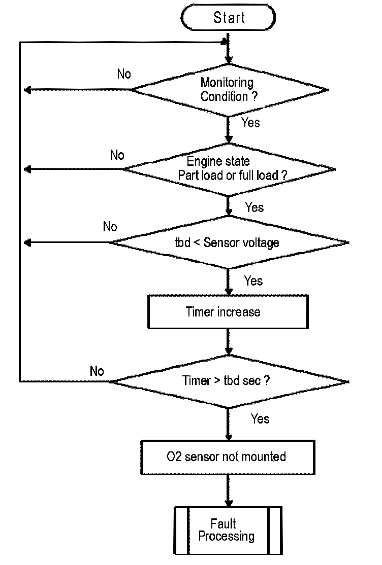 The oxygen sensor in air check monitors if the sensor is attached to the exhaust pipe and whether the exhaust is sampled correctly (no leakage). A malfunction is detected if the oxygen sensor voltage is above a threshold (shows too lean mixture in part load or full load) for a specified time.