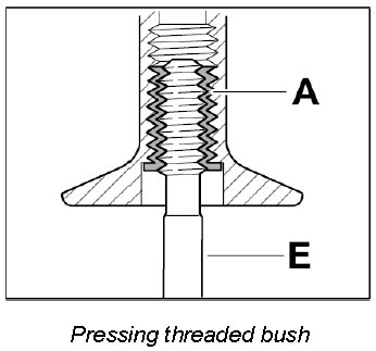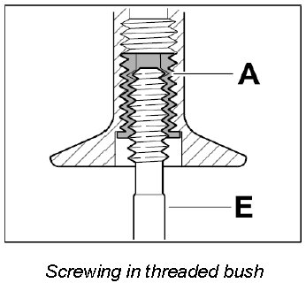 Screw threaded bush A in fully (note bush length classification) using the screw-in tool E.
