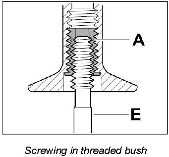 Screw threaded bush A in fully (note bush length classification) using the screw-in tool E.