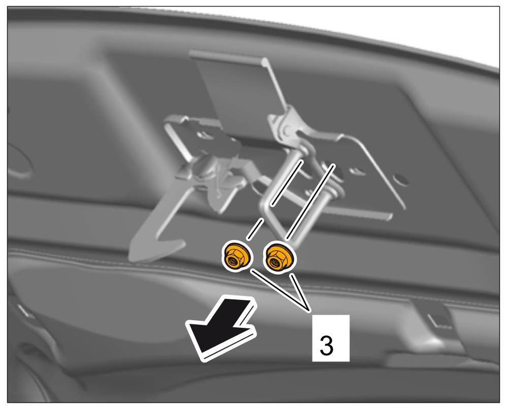 3. Screw on fastening nuts -3- and tighten to the specified tightening torque => Tightening torque: 1 Nm (0.5 ftlb.)0.5 Nm (0.5 ftlb.).