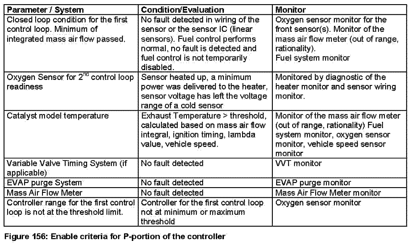 As already mentioned under "General" the 2nd control loop optimizes the adjustments of the first control loop over a longer time to achieve the maximum conversion of the catalyst in a very small window of air/fuel ratio close to Lambda=1. The second control loop uses a binary Oxygen sensor which is operated at a target value of sensor output voltage. Deviations from the target voltage are corrected by adjusting the air/fuel ratio until the target voltage is achieved again. The controller of the 2nd control loop is a combination of proportional and integral (PI-) controller. The proportional and the integral portion of the controller have individual enable criteria.