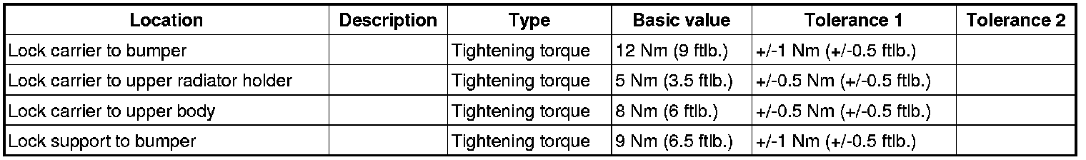 4.2. Tighten fastening screws -2- for the bumper to -> Tightening torque: 12 Nm (9 ftlb.)+/-1 Nm (+/-0.5 ftlb.).