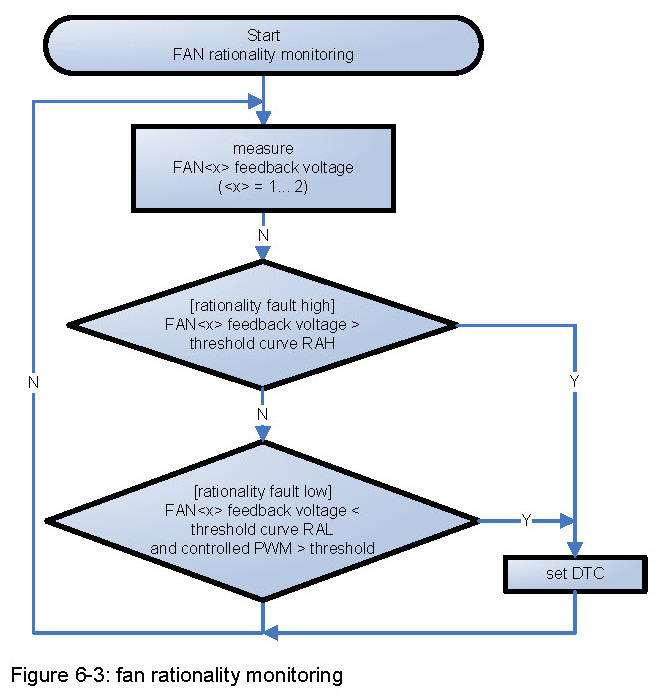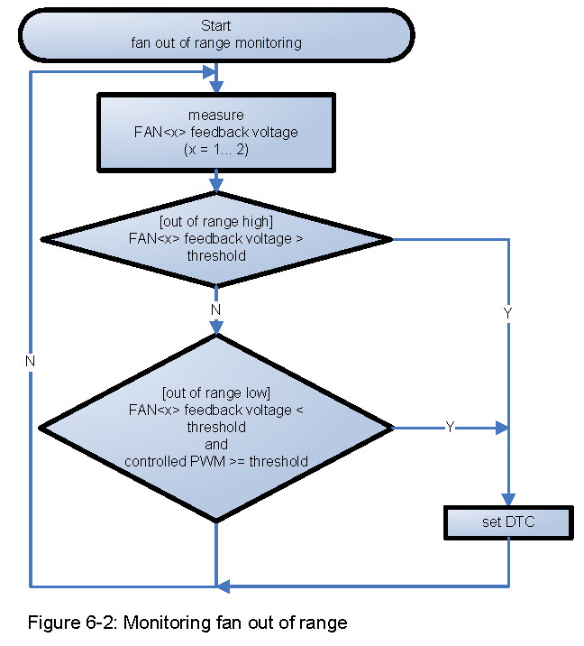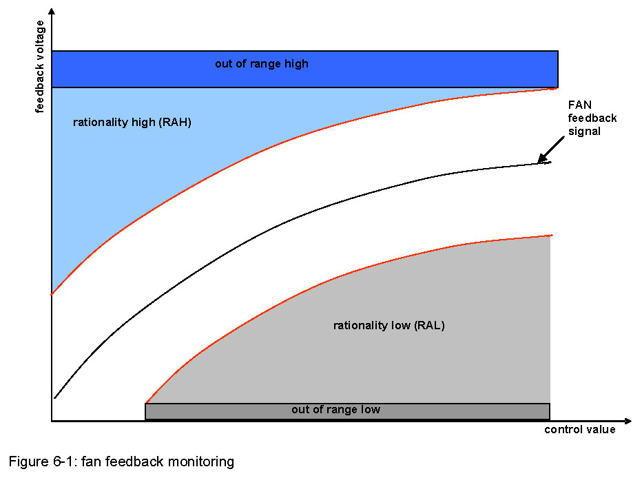 This monitoring strategy will check, if the feedback voltage value of each fan exceeds an upper or lower threshold (see Figure 6-1).