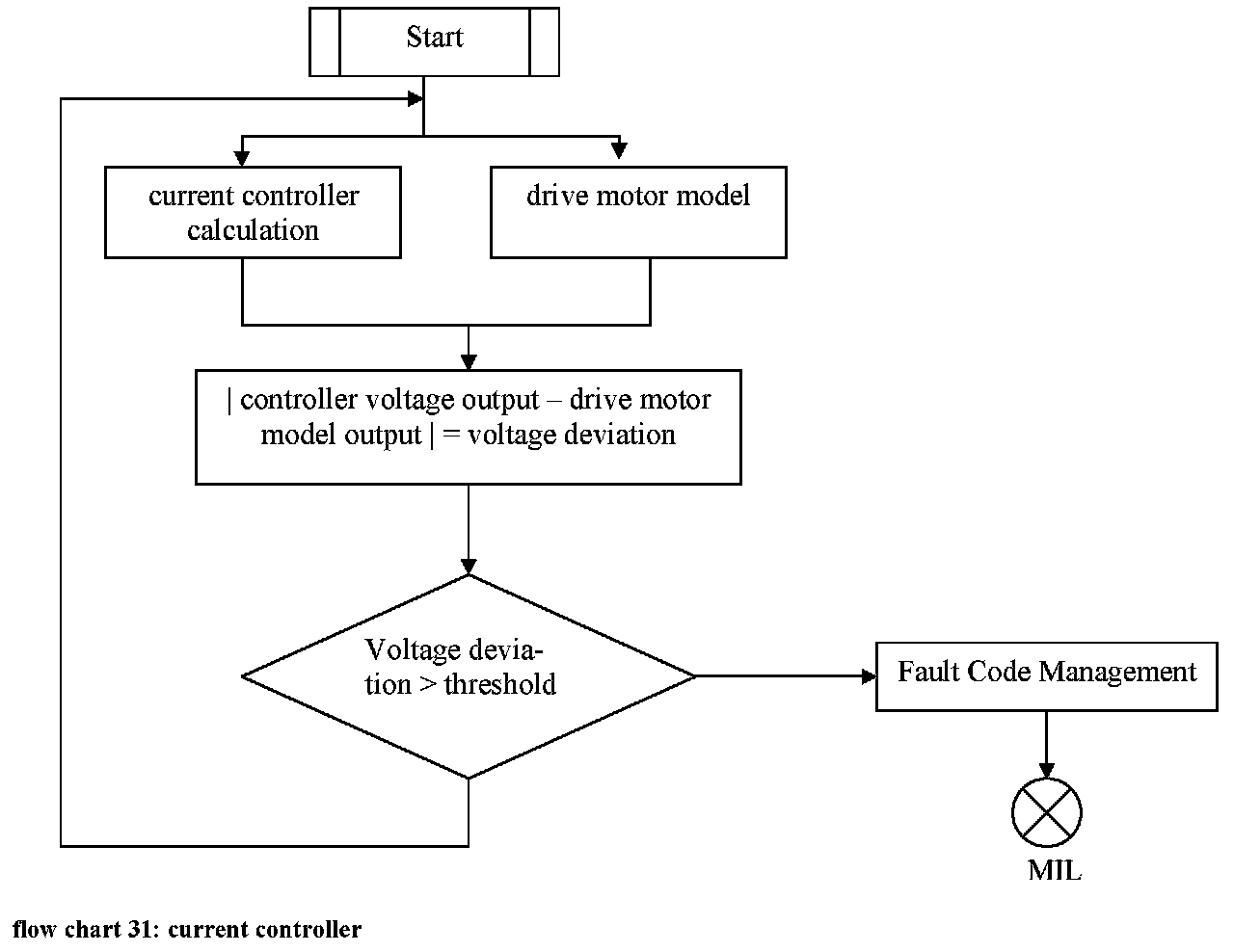 The monitor evaluates the deviation between controller output and model output. If the deviation is to high, the current controller out does not fit to the calculated drive motor voltage and a malfunction is detected.