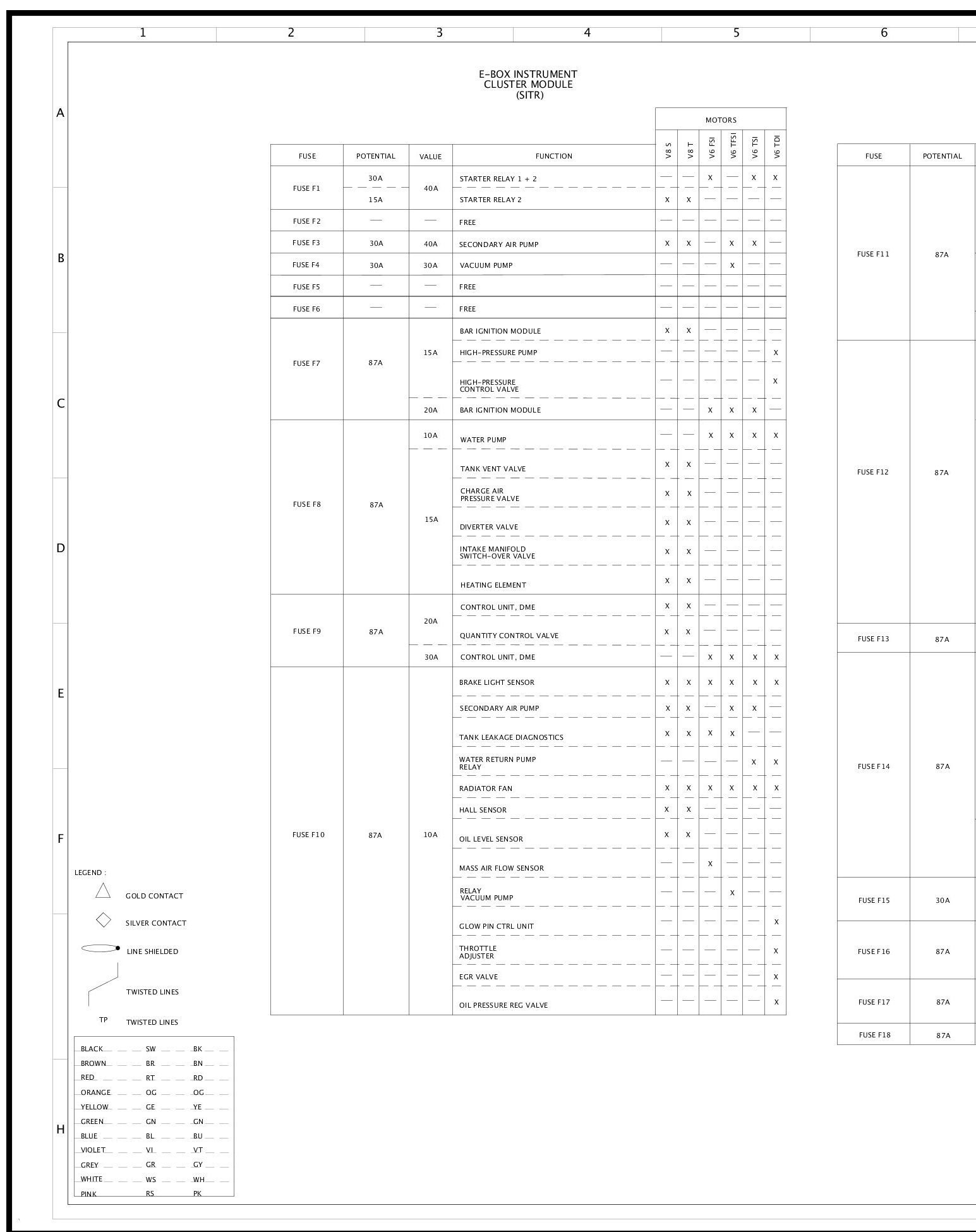 Fuse Assignment Engine Compartment - Sheet 92AFuse Assignment Engine Compartment - Sheet 92A (Part 1):