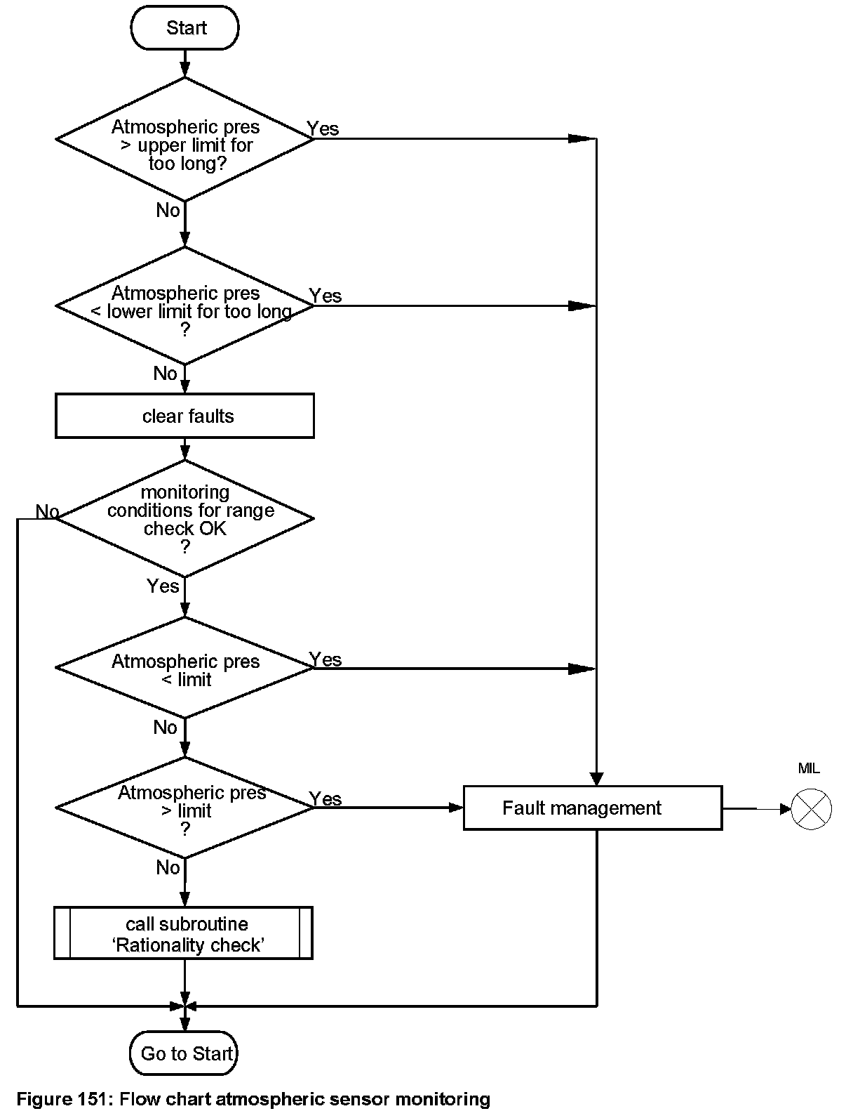 If the atmospheric pressure stays below a lower limit for too long, a short circuit to ground is detected and a Atmospheric Pressure Circuit Low fault is set.