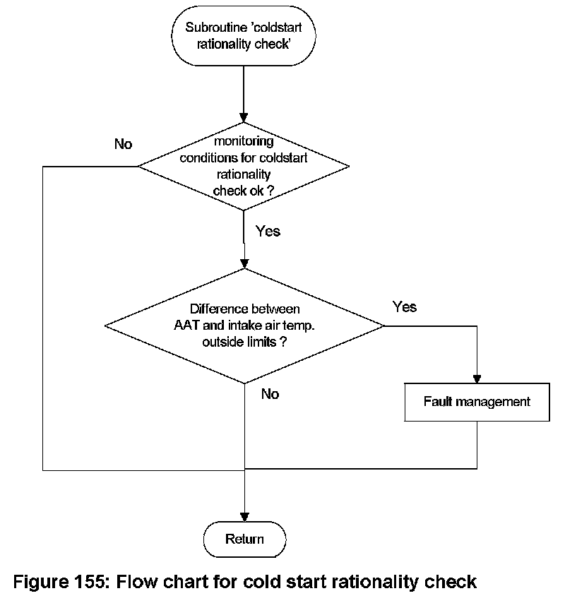 4. Rationality check at normal engine temperature - AAT is compared to a modelled value; if the difference is outside of limits, a fault is detected.
