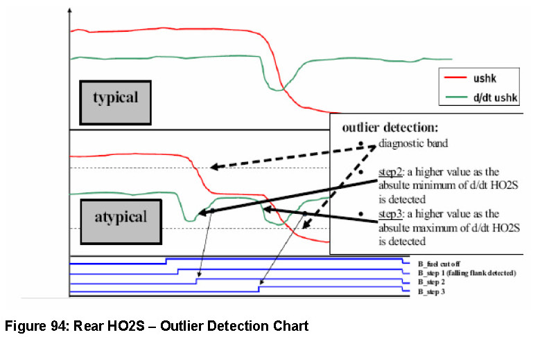 The described physical / chemical effect on the rear O2S signal is shown in figure below.