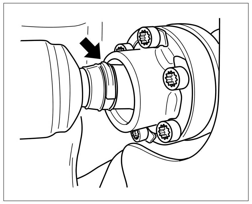 8. Connect the tools together as shown in the illustration. Press the bearing in carefully.