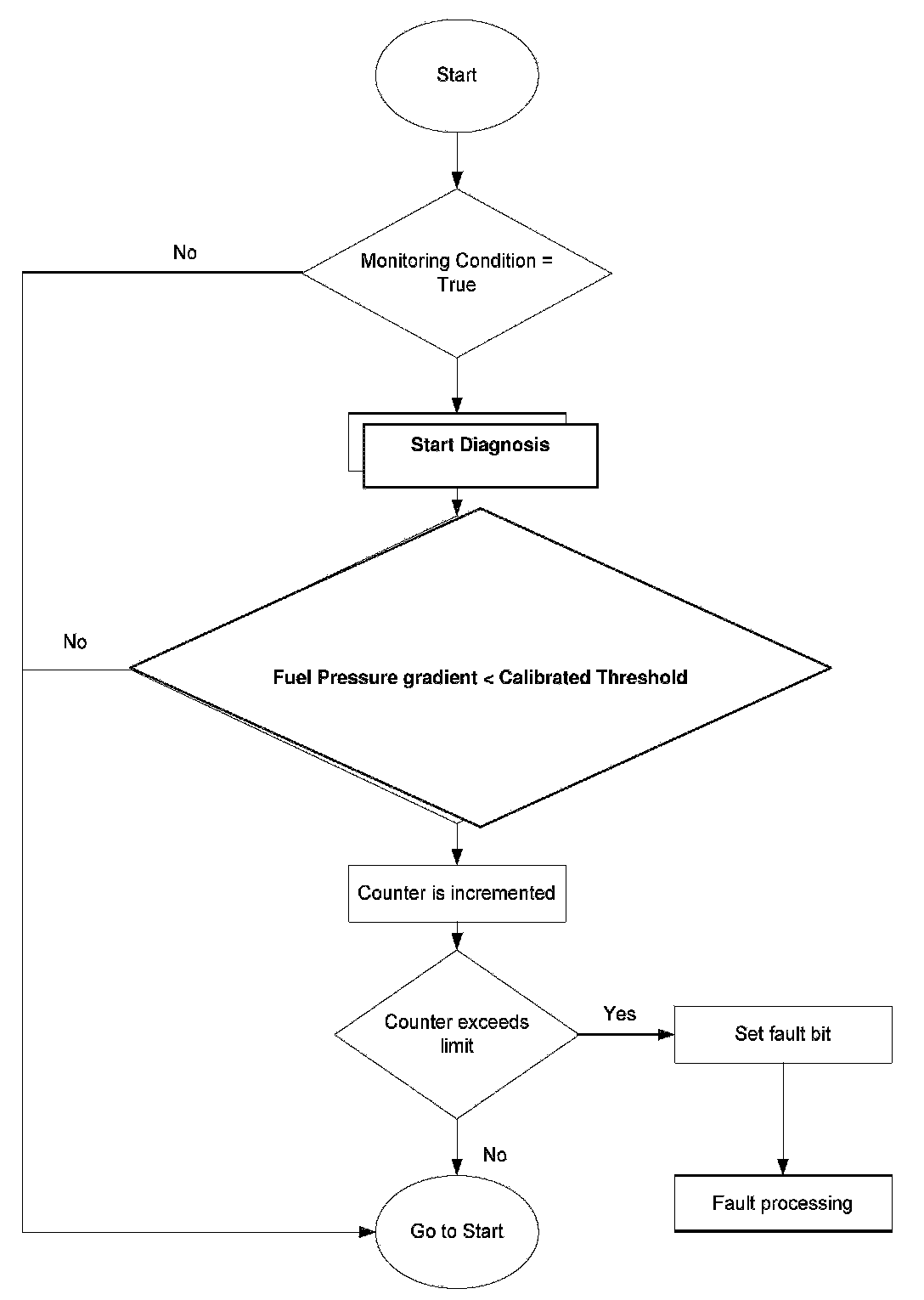 Flow Chart fuel pressure sensor stuck diagnosis