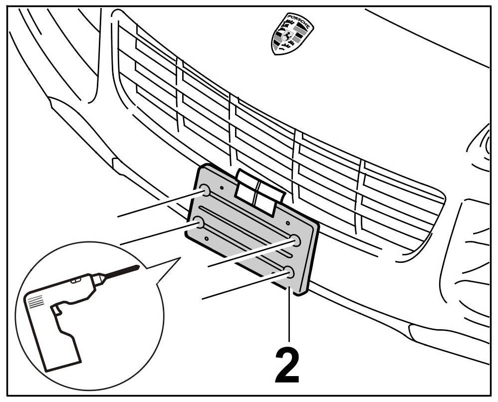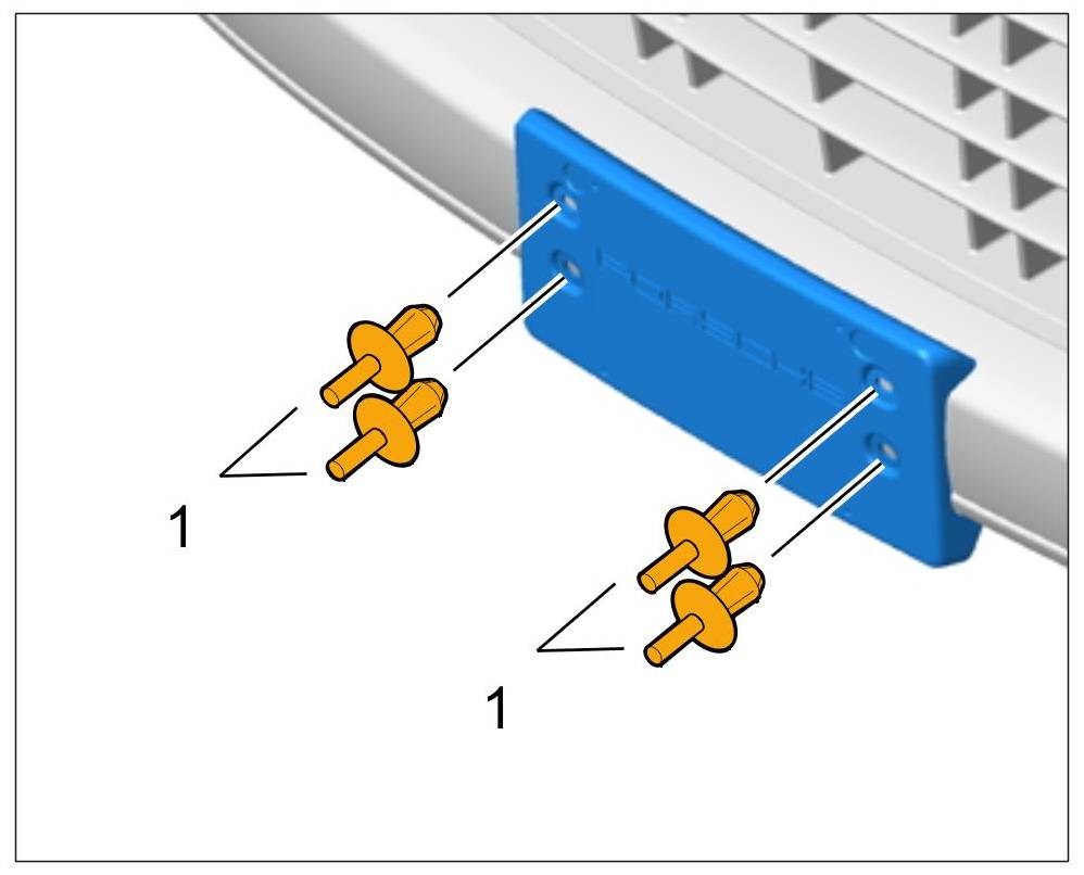 1. Drill holes for number plate cover in the front apron.