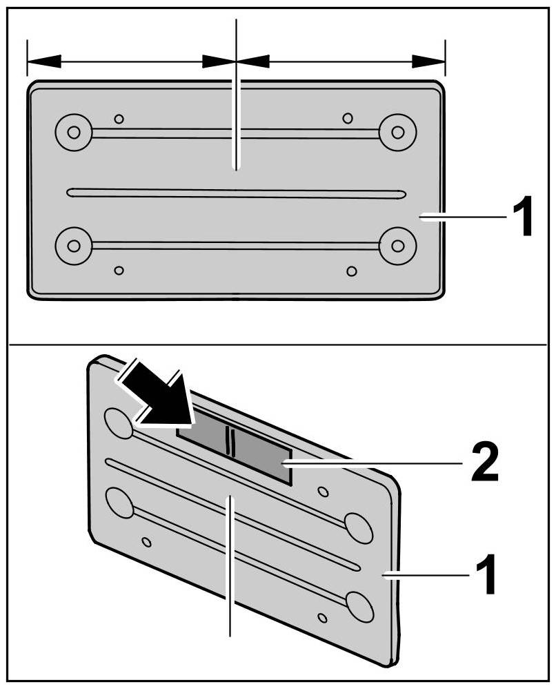 1.4. Approximately in the centre of the front number plate cover -1- , affix a strip of adhesive tape that can be written on -2-.