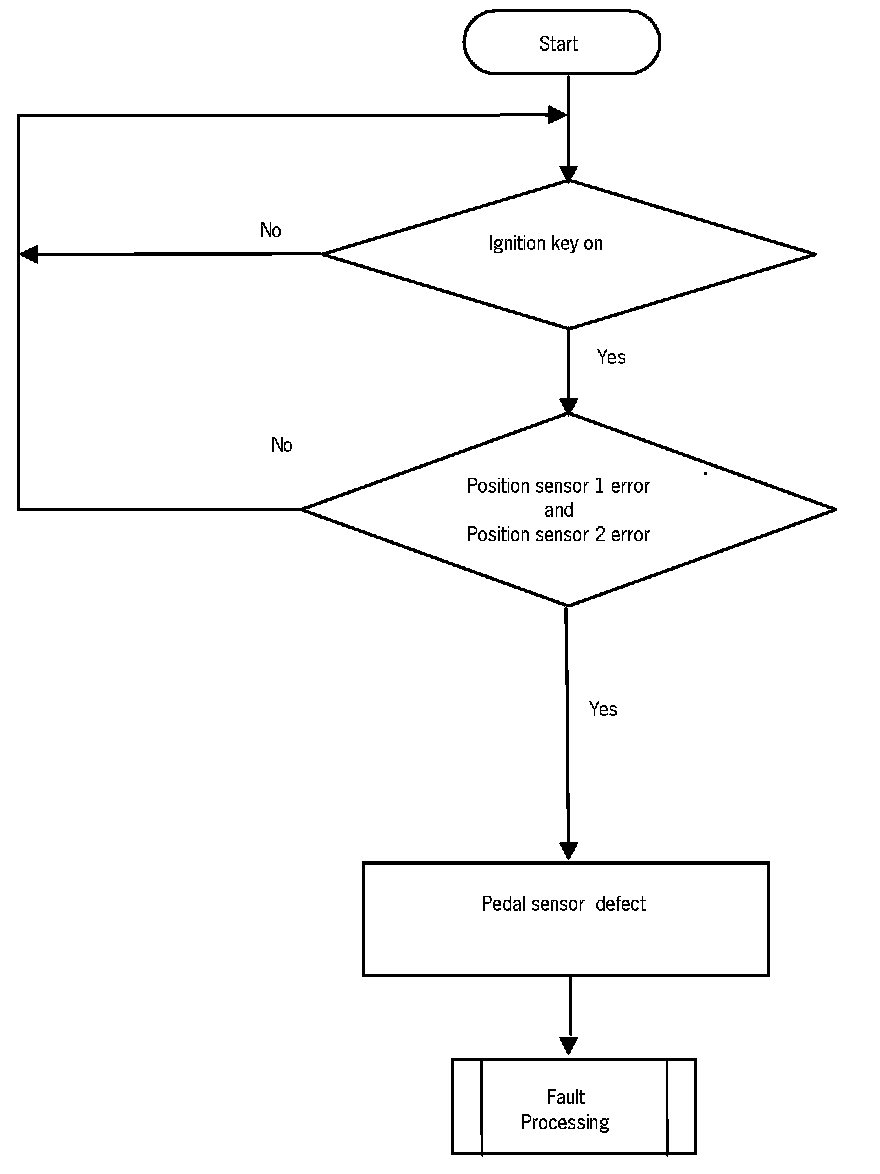 The aim is to detect a multiple pedal value sensor fault. In case of multiple pedal value sensor fault the engine management state is set to idle state. Only creeping is possible.