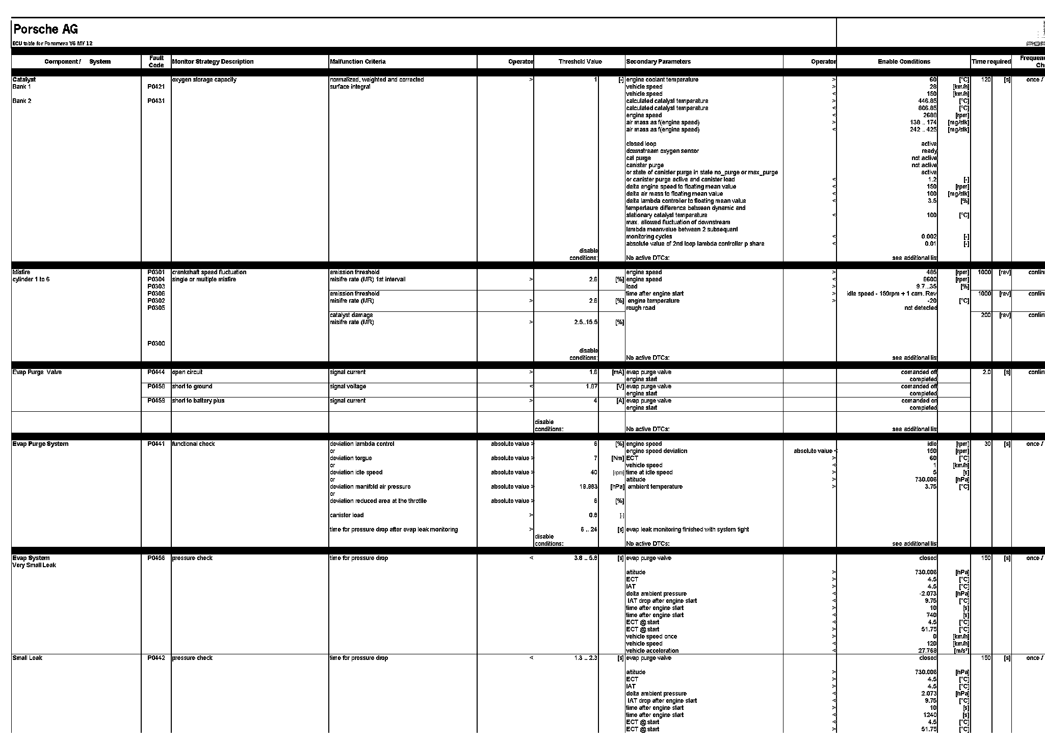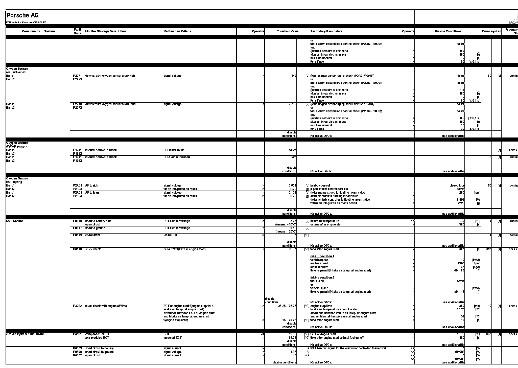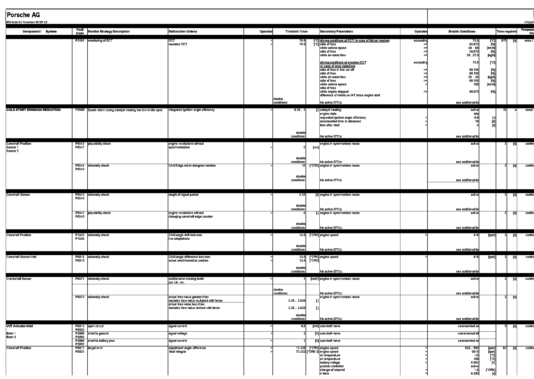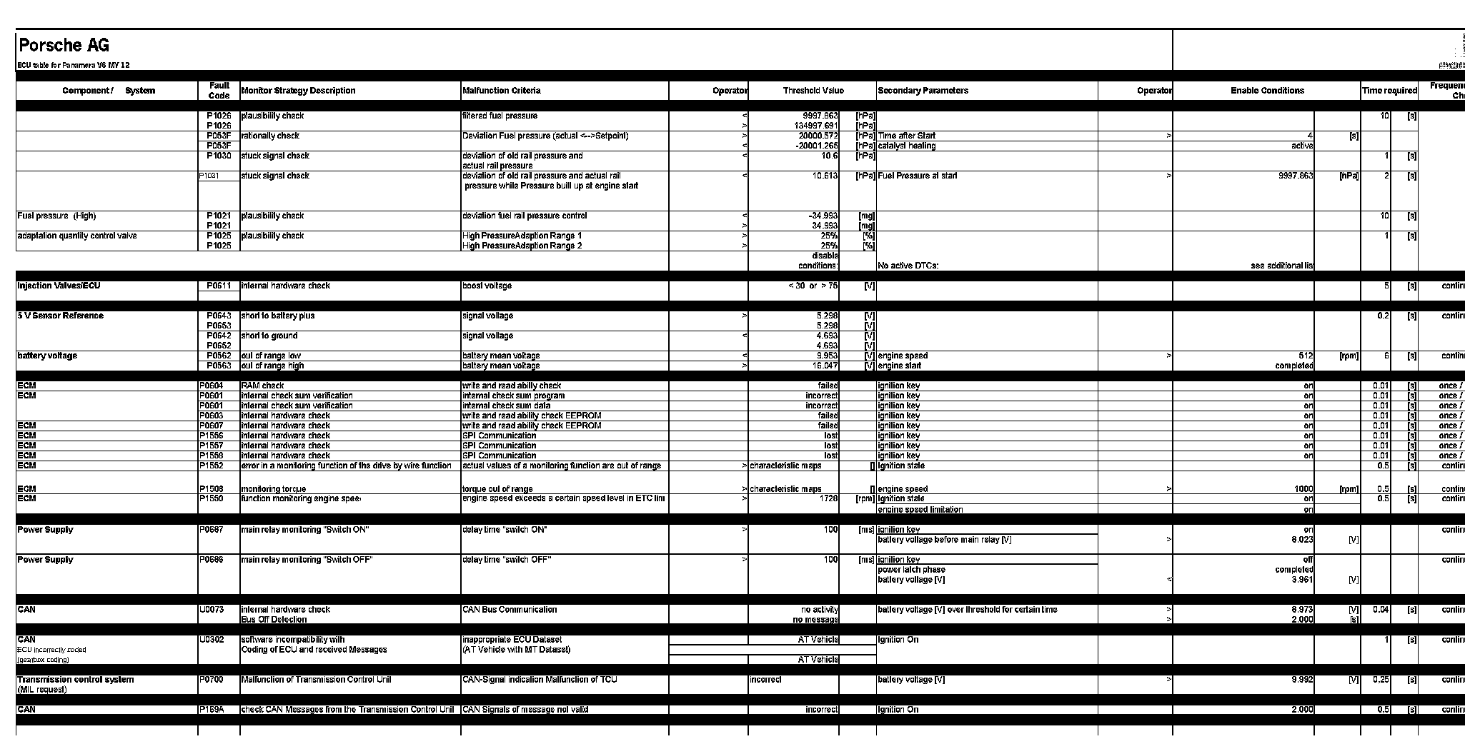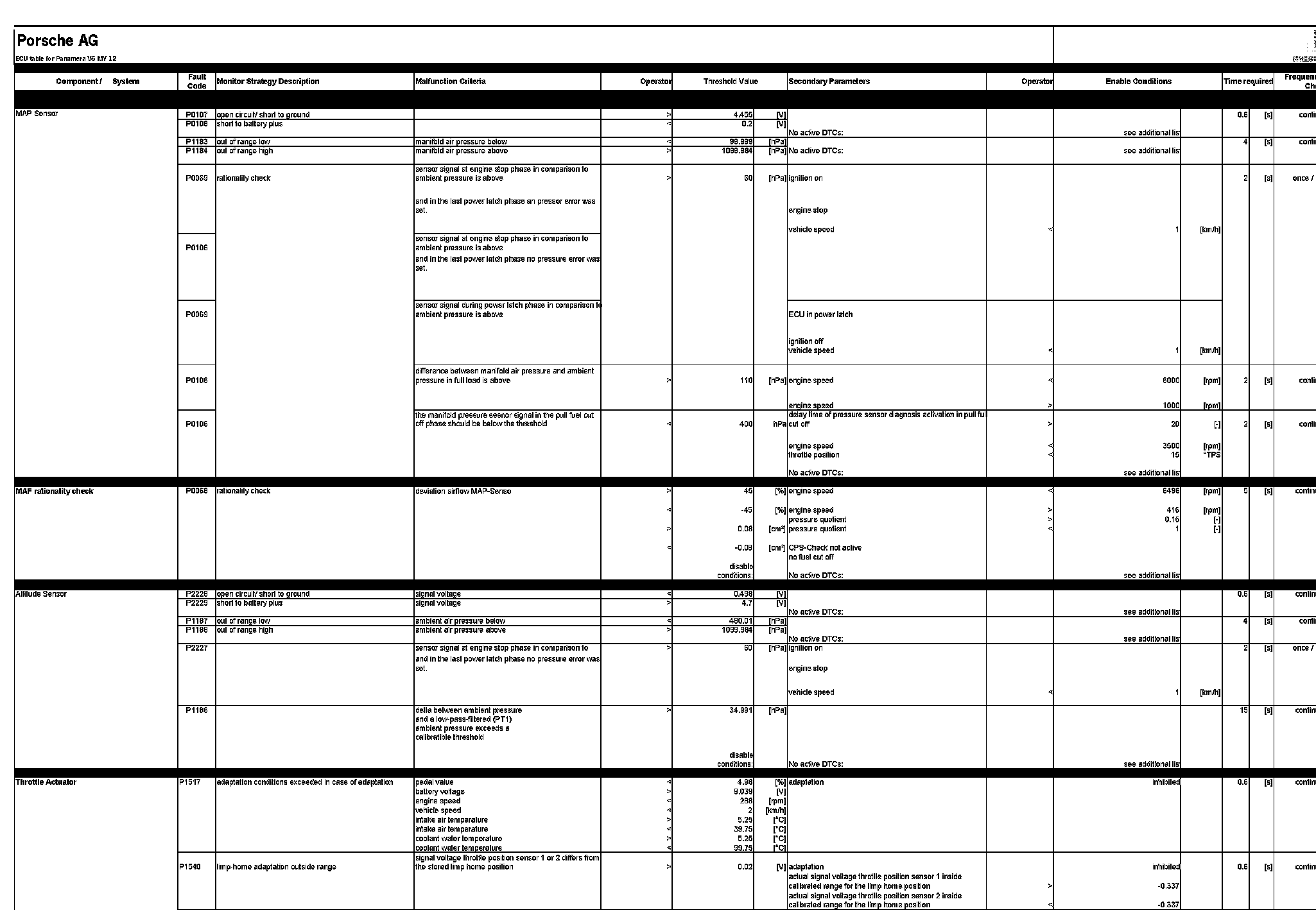 ECU table for Panamera V6 MY 12