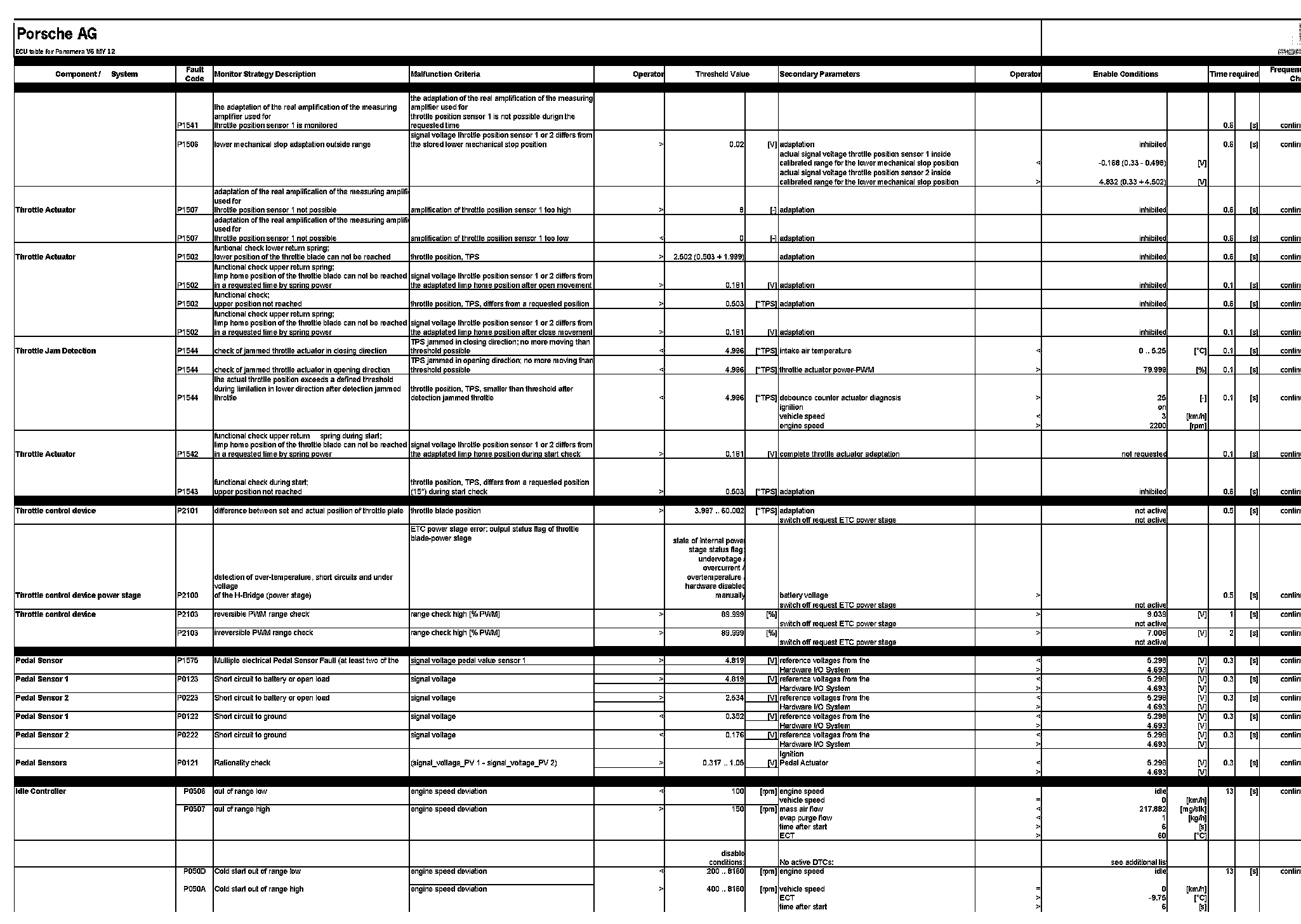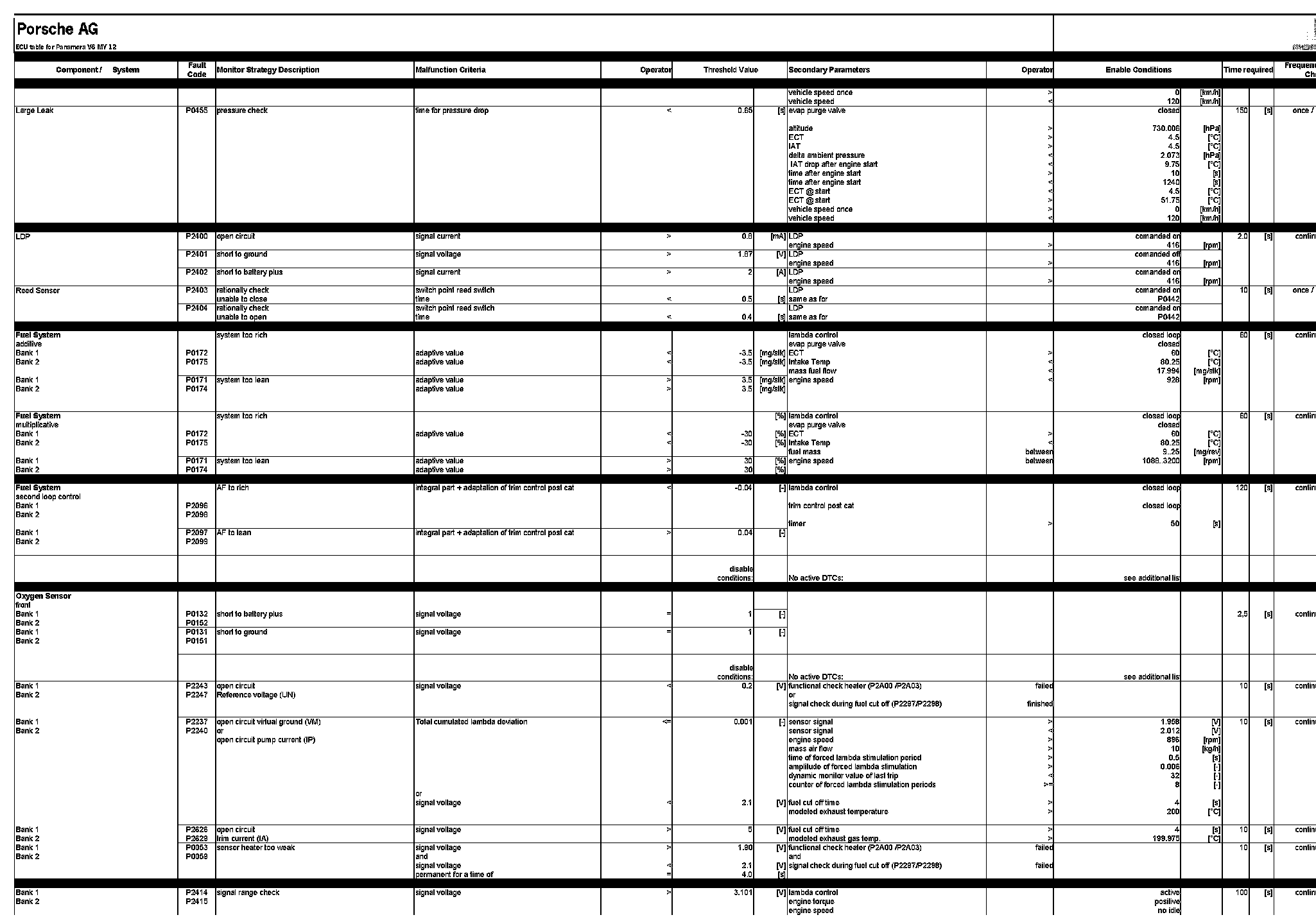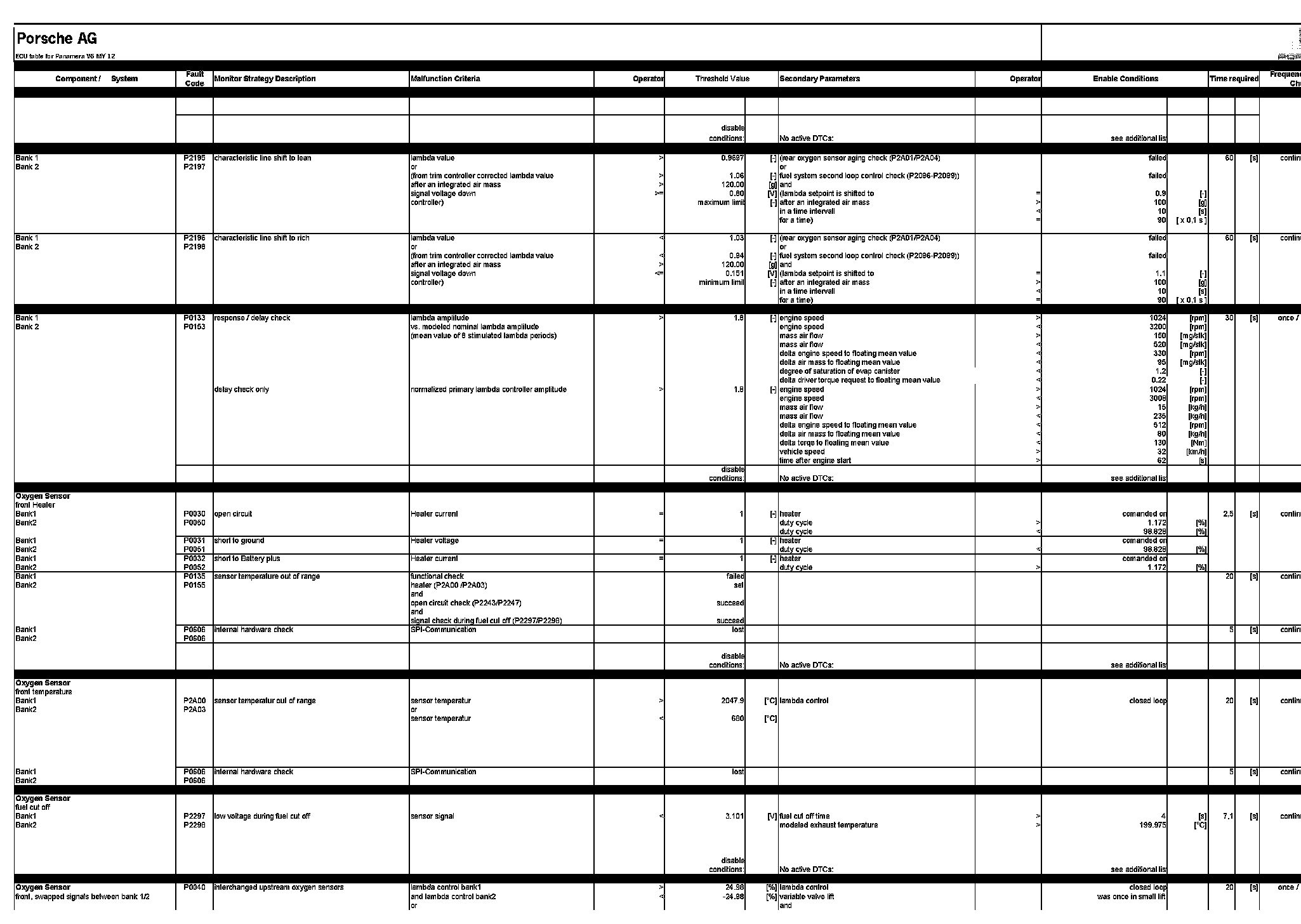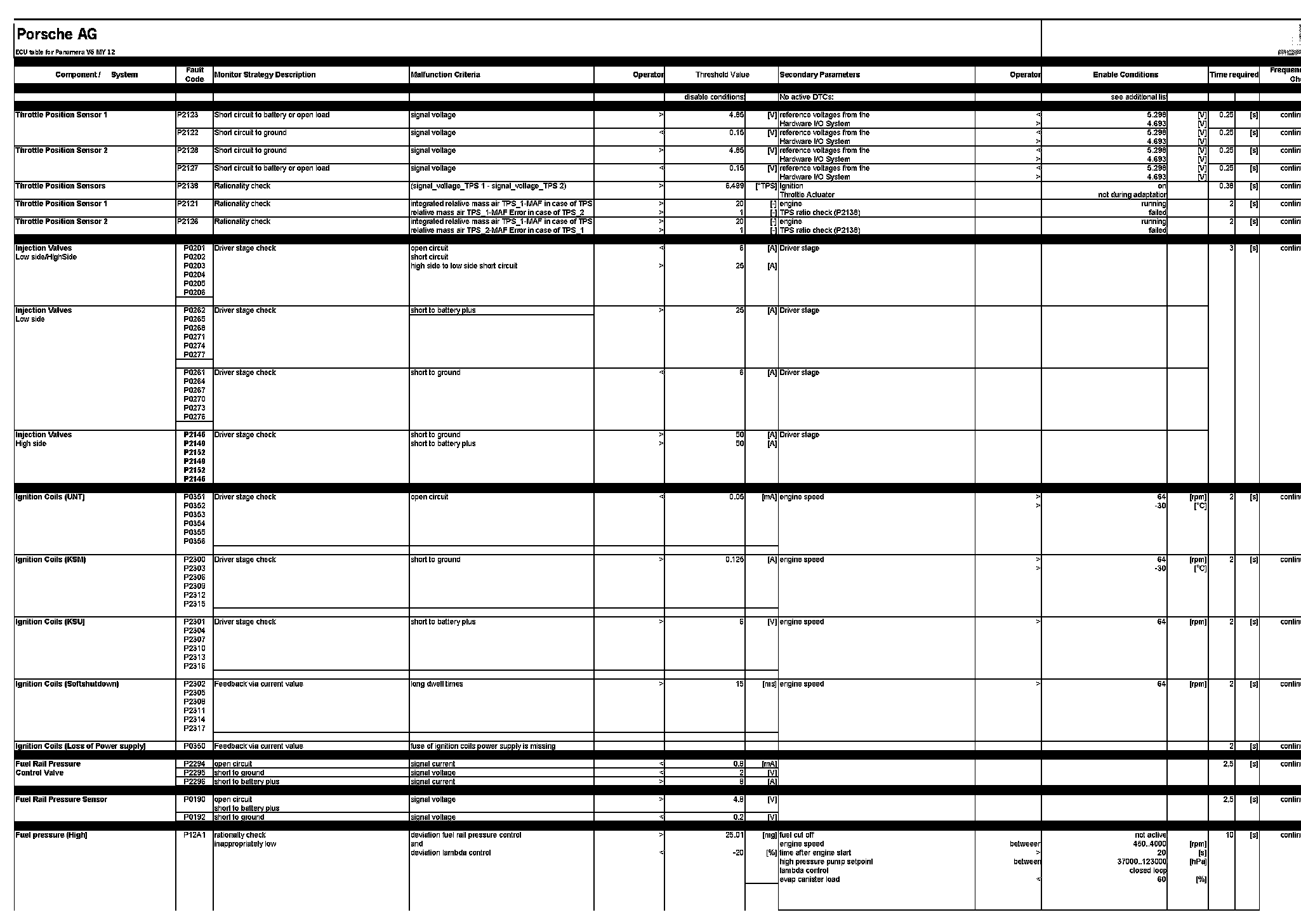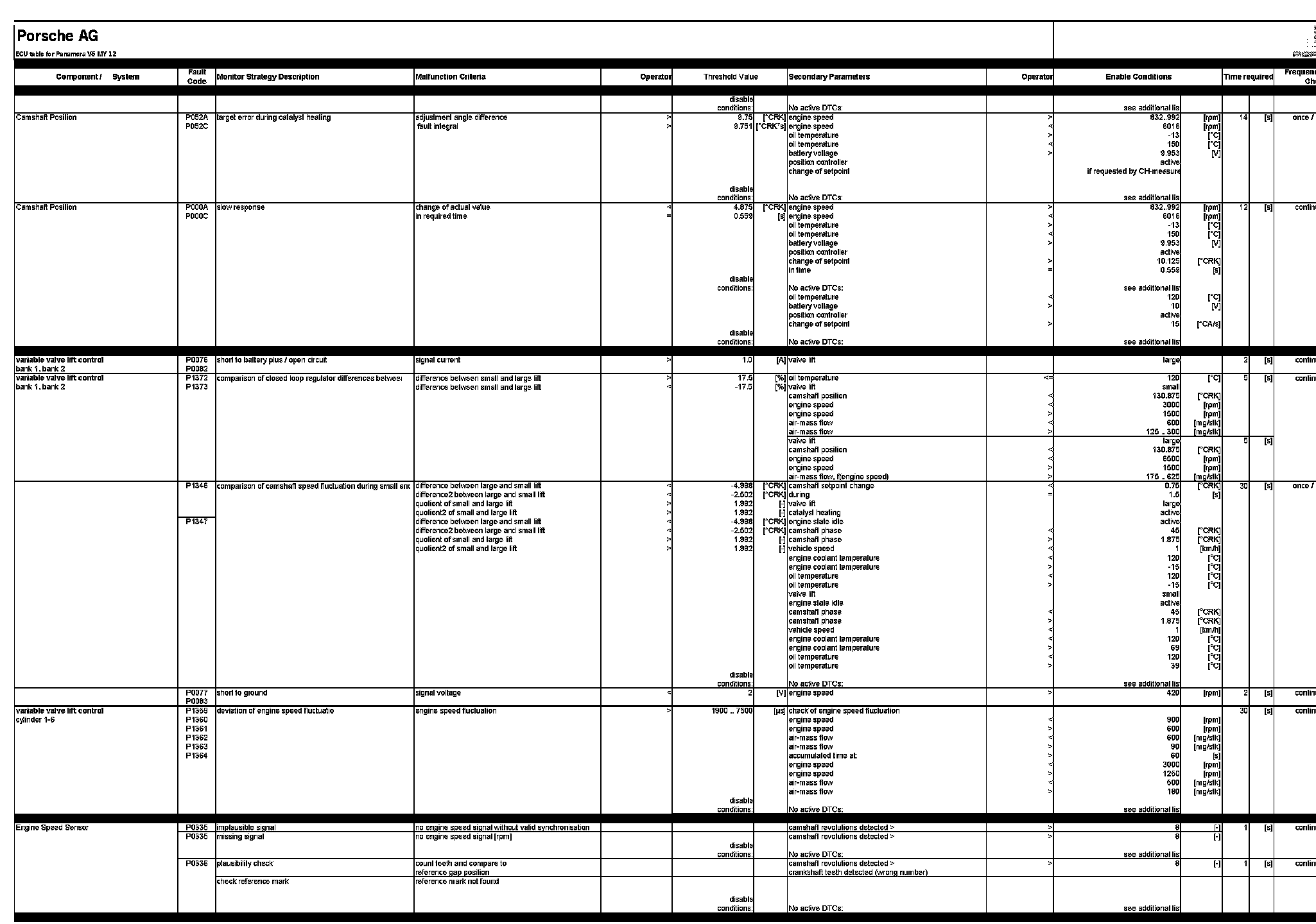 ECU table for Panamera V6 MY 12