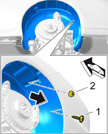 1. Unscrew fastening screw -1- securing the wheel housing liner to the centre underbody panelling.