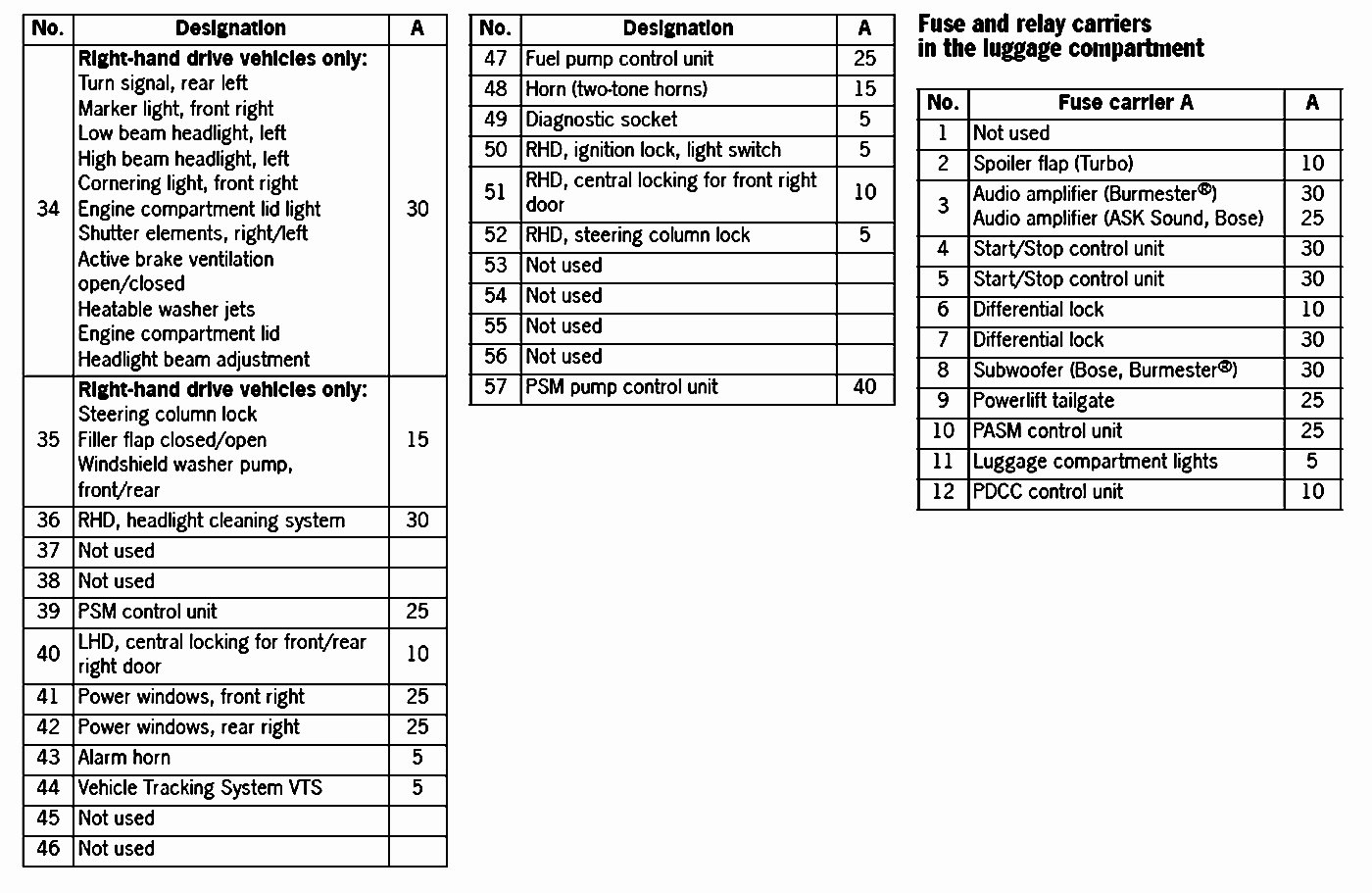 Fuse Box and Relay Locations and AssignmentsFuse Box and Relay Box in Luggage Compartment