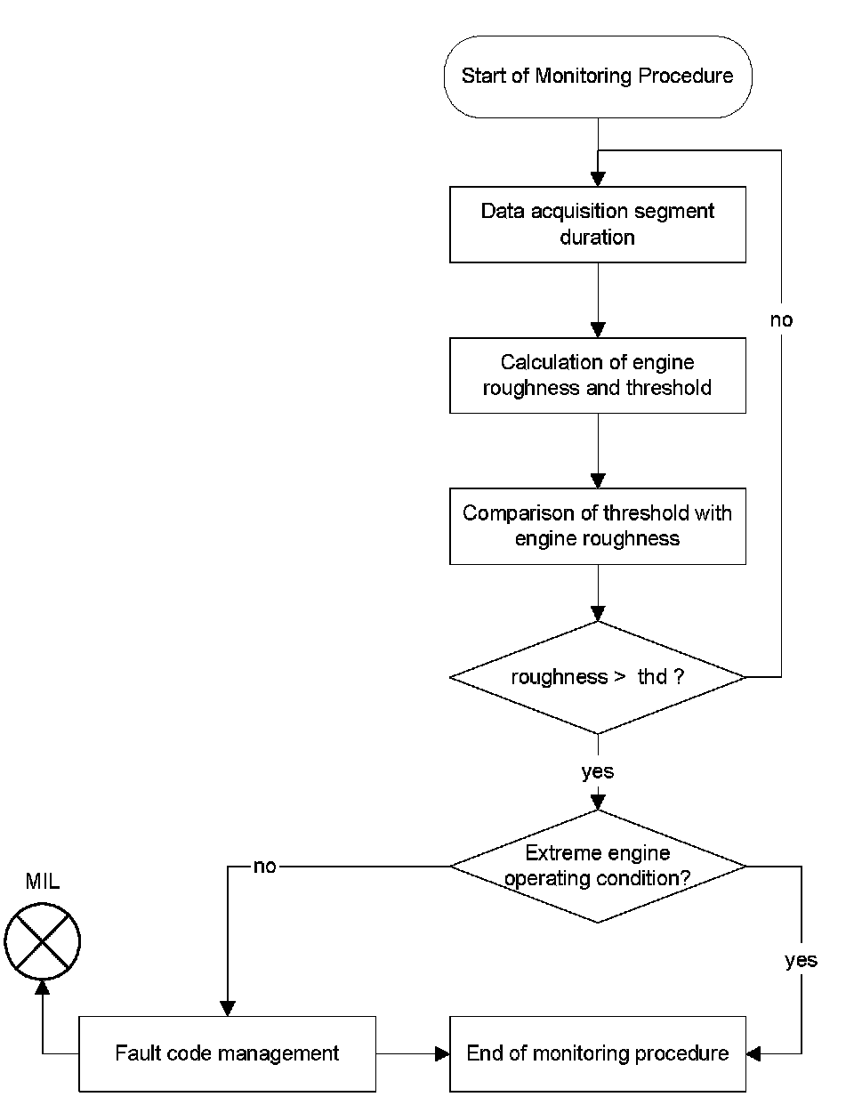 Misfire detection is performed by comparing, the engine roughness threshold value with the engine roughness value. If the threshold is exceeded, single misfire is detected.