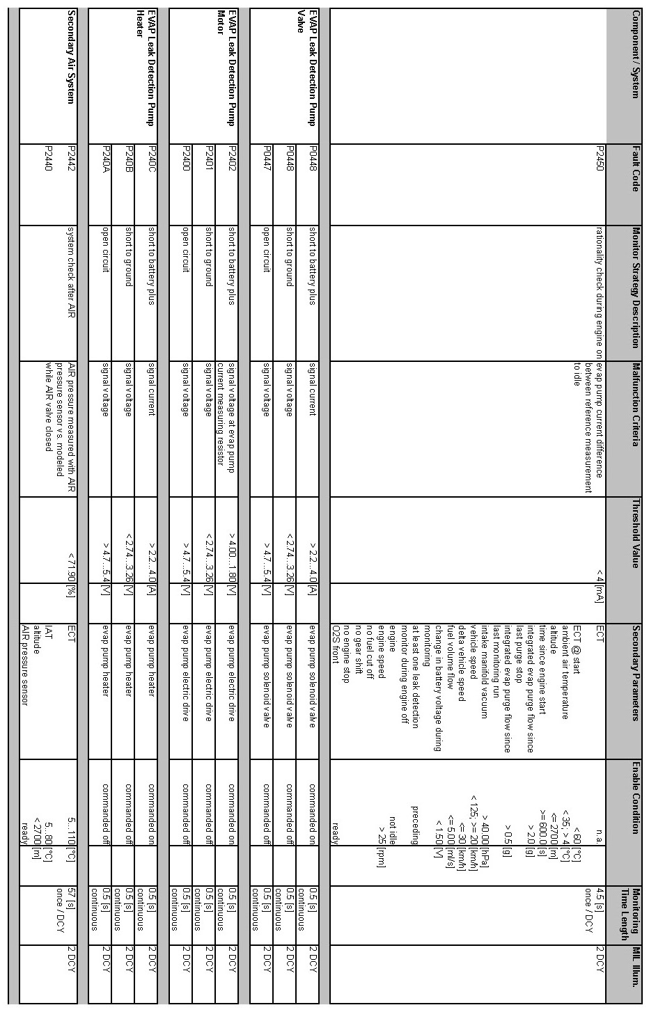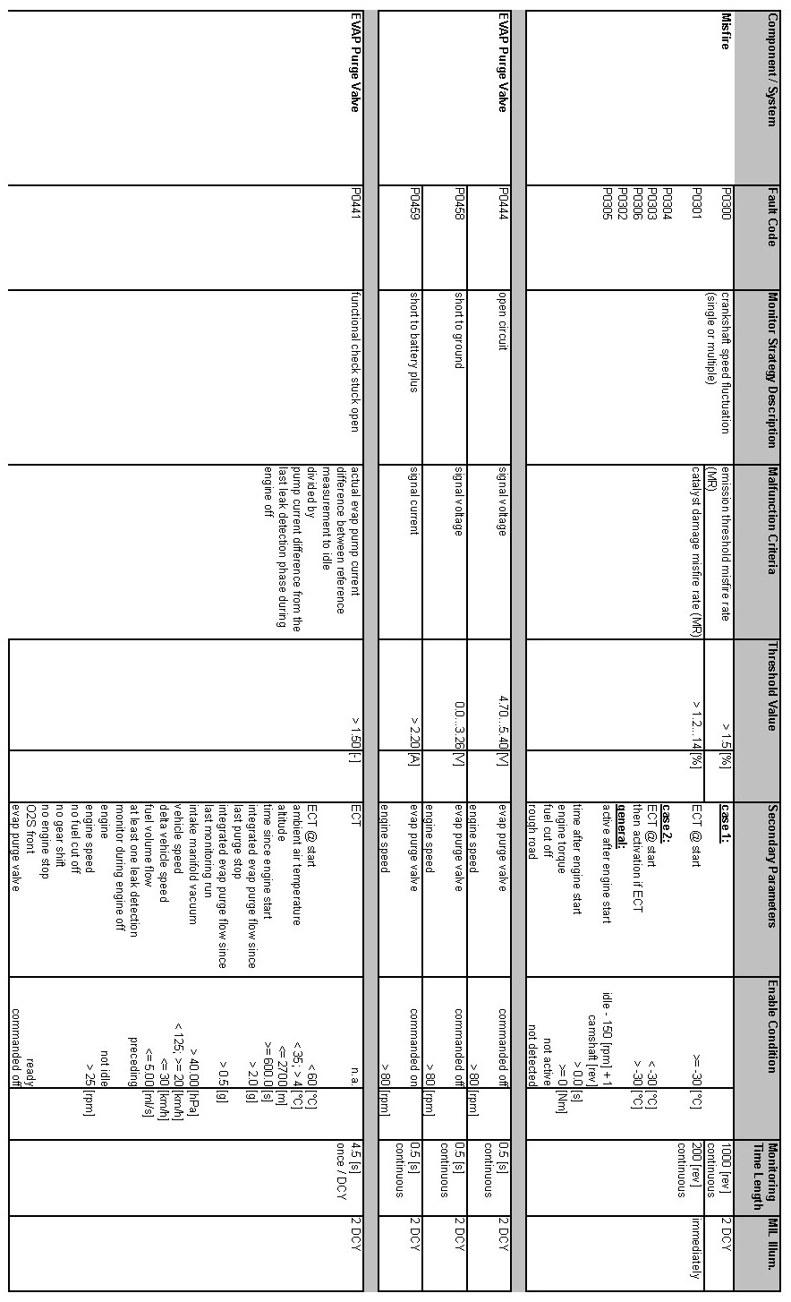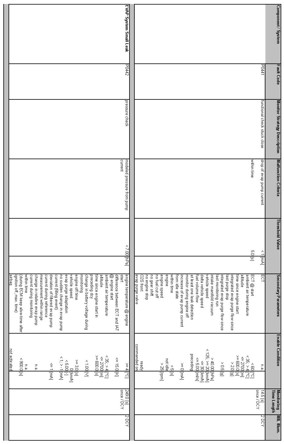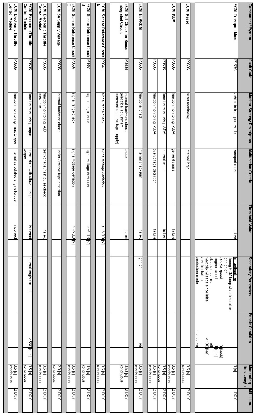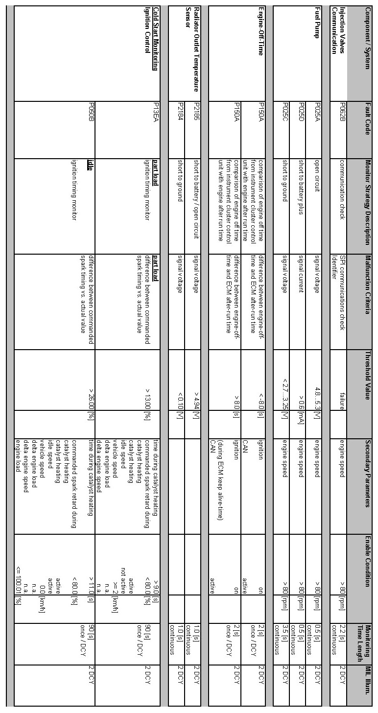OBD Summary Table MY 2012