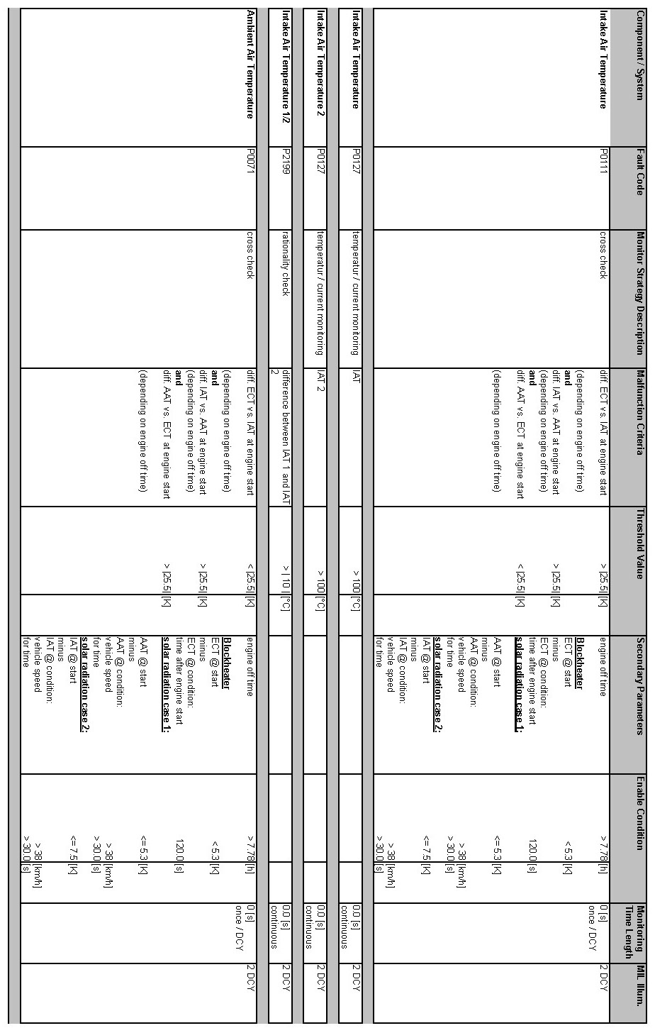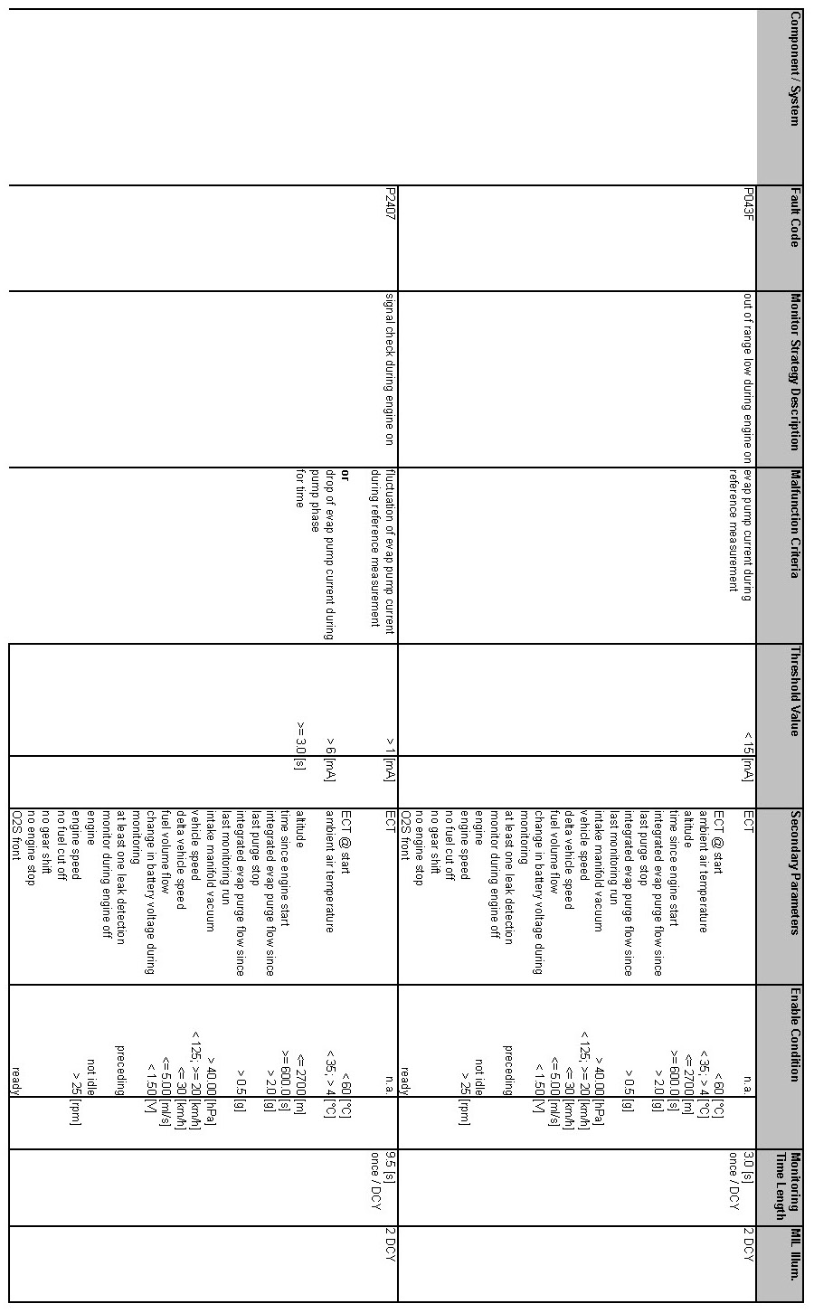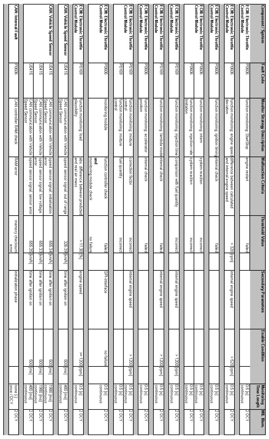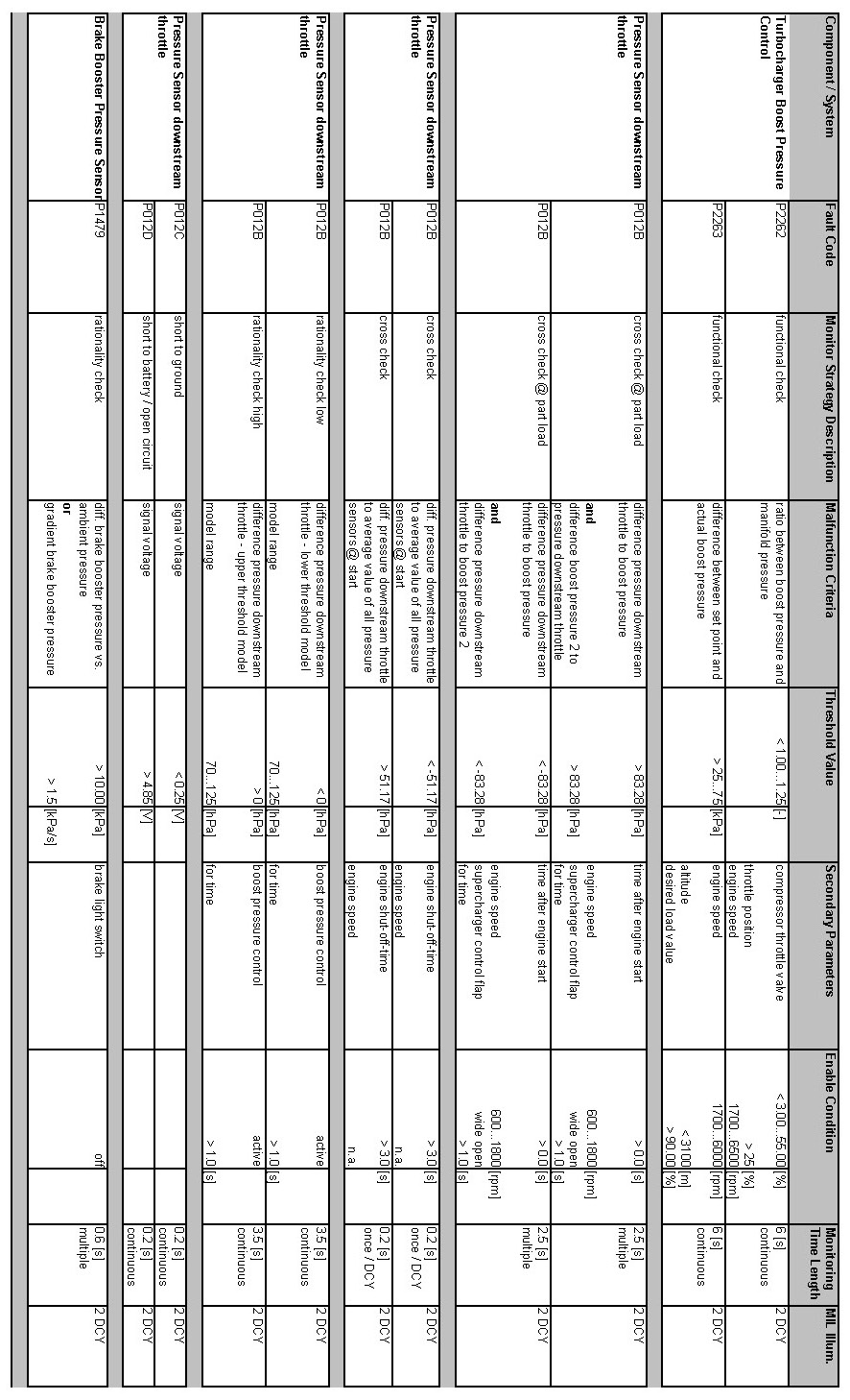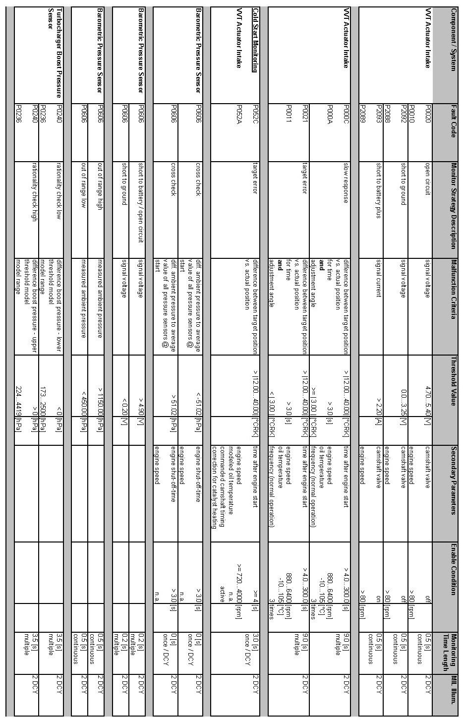 OBD Summary Table MY 2012