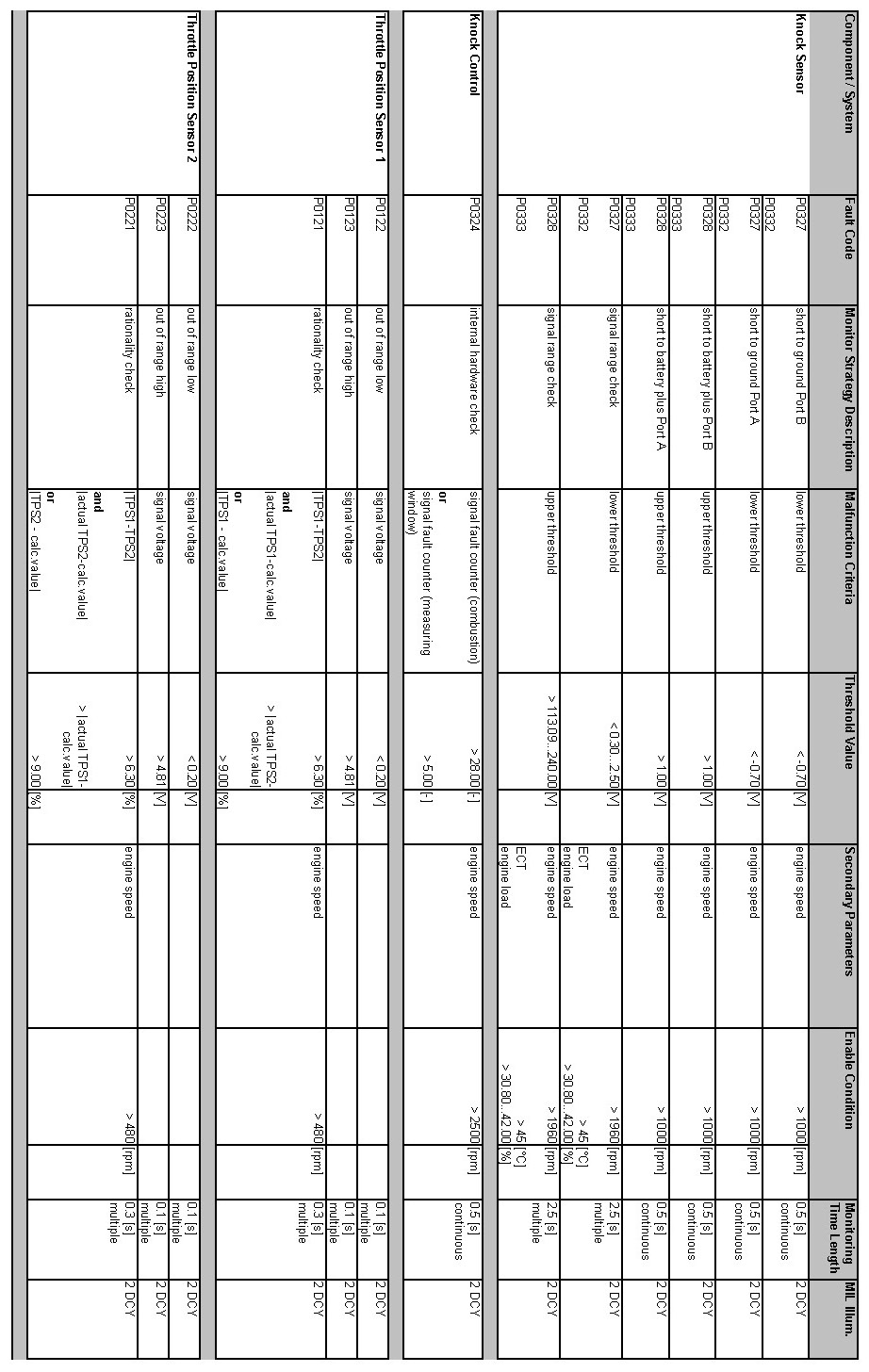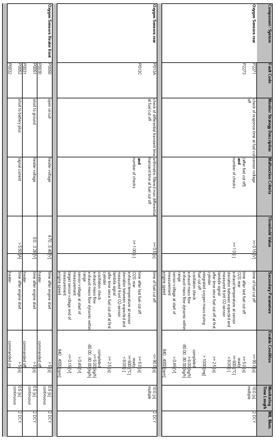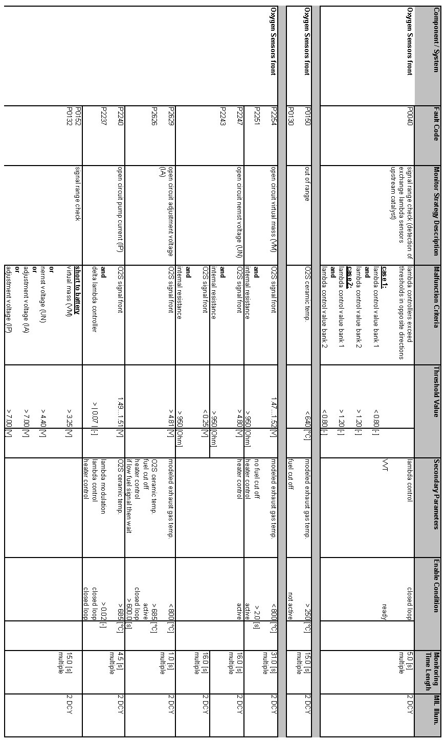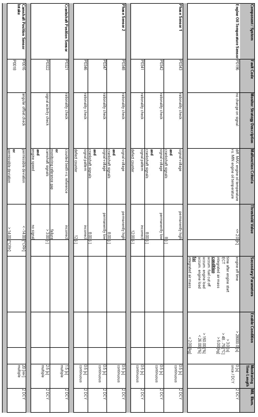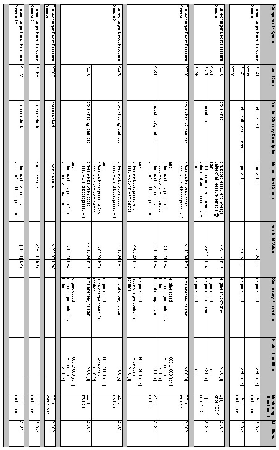 OBD Summary Table MY 2012