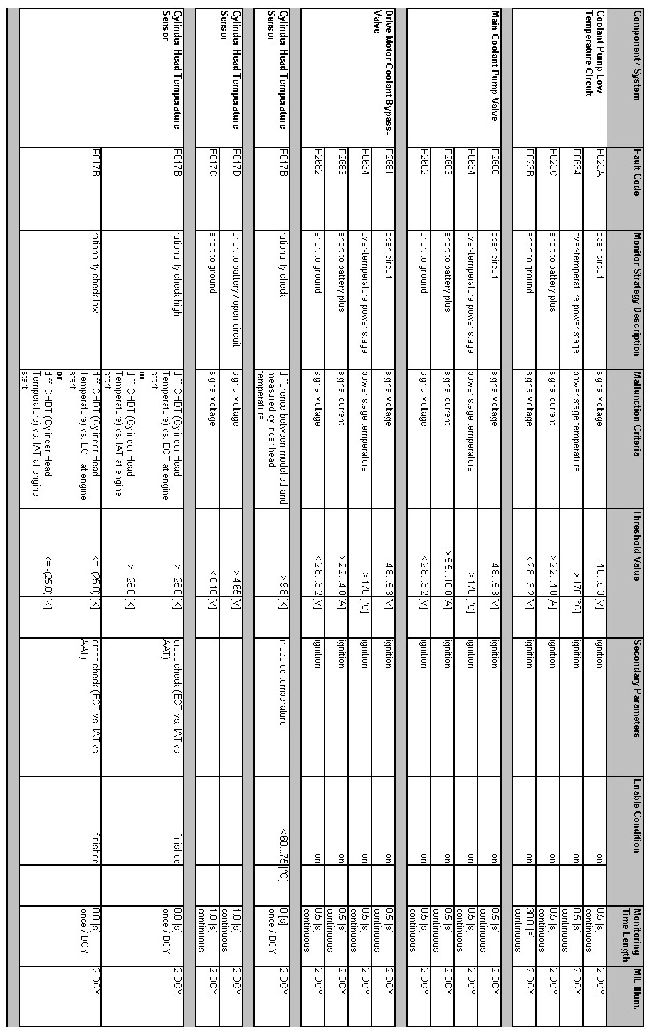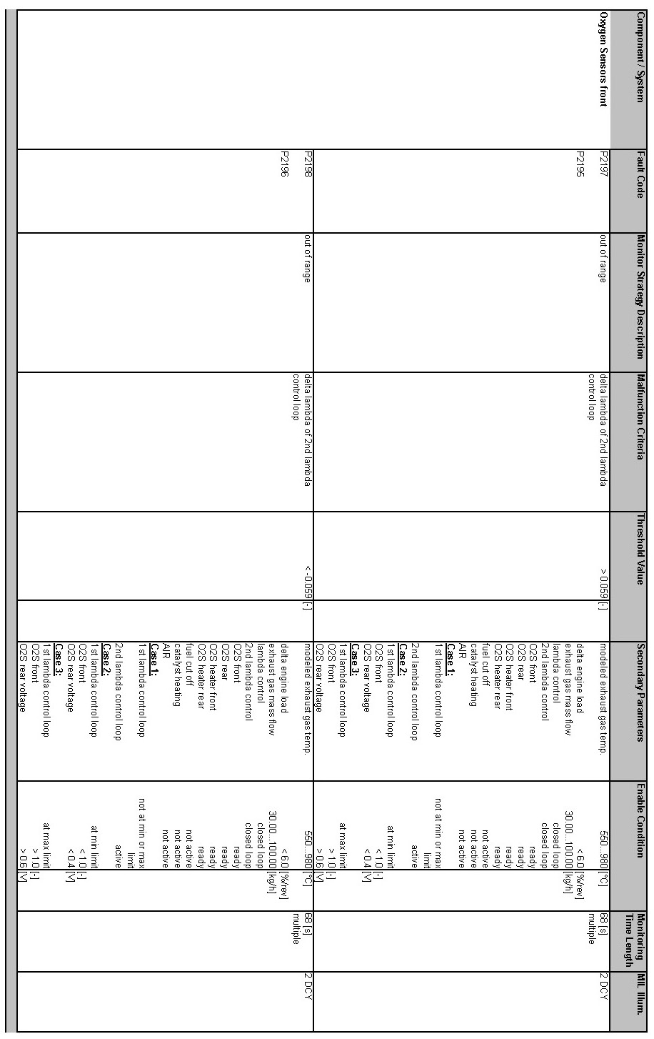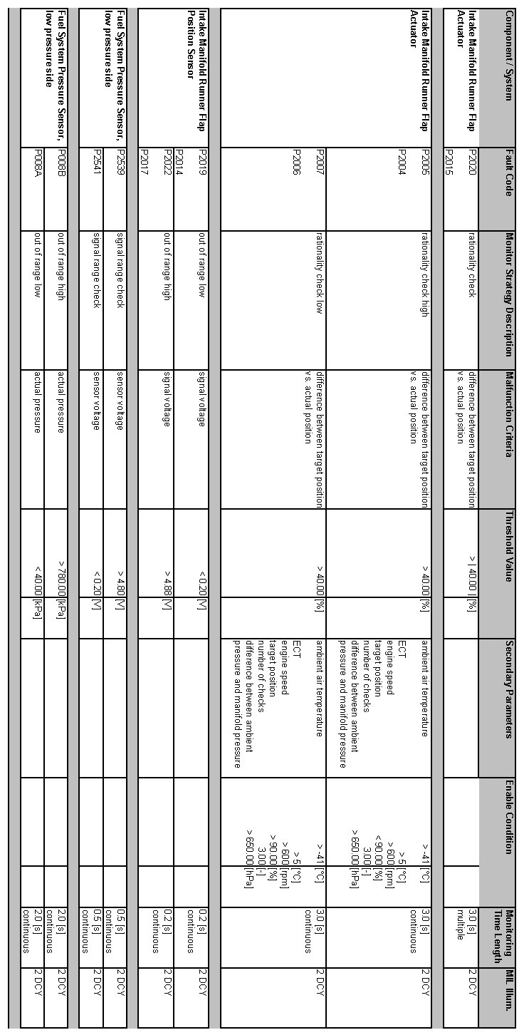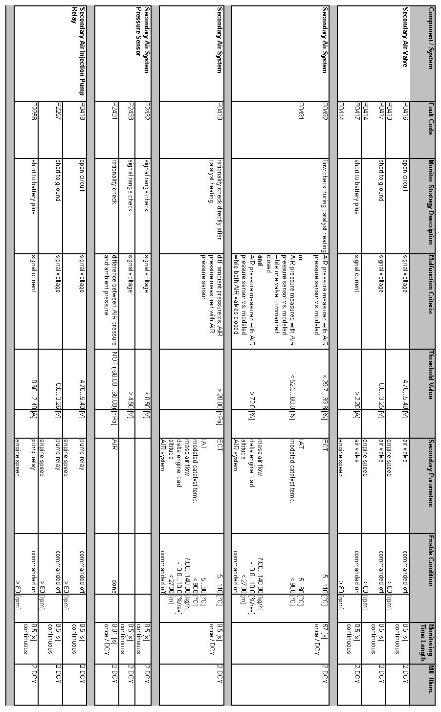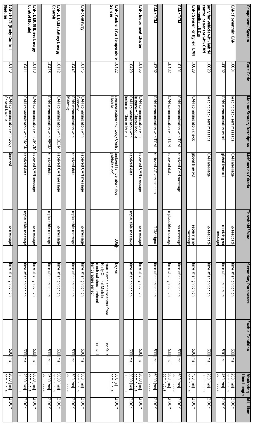 OBD Summary Table MY 2012