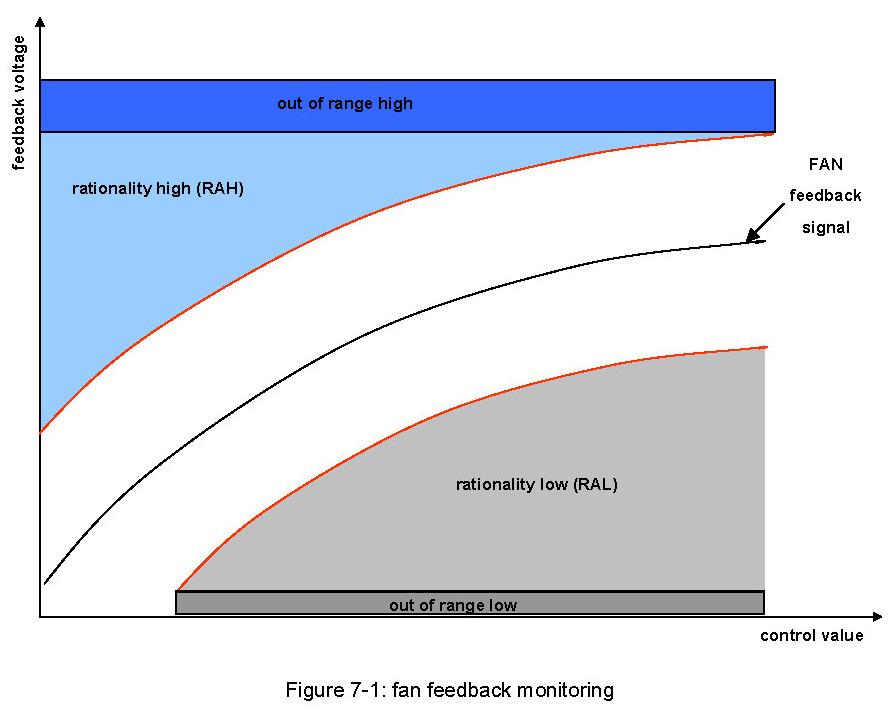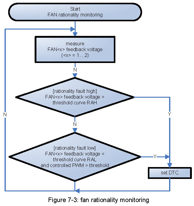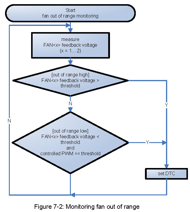 This monitoring strategy will check, if the feedback voltage value of each fan exceeds an upper or lower threshold (see Figure 7-1).