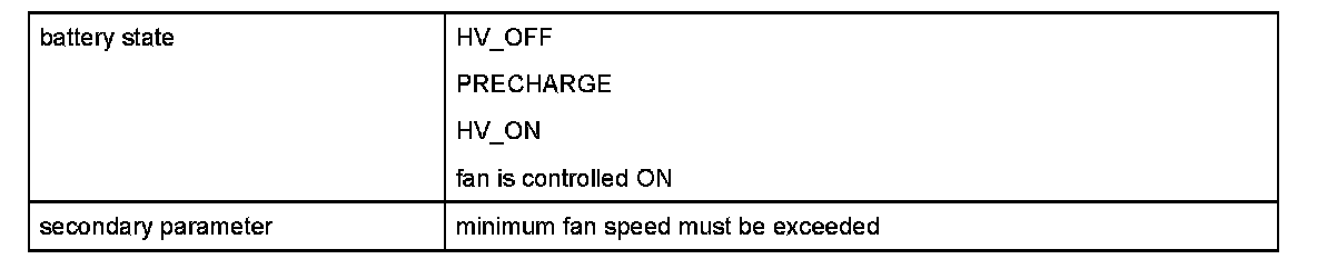 7. Battery Fan MonitoringThe battery contains two fans for its parasitical cooling. Both fans are check for proper response by using the analog feedback signals. The analog feedback voltage depends on the fan revolution.